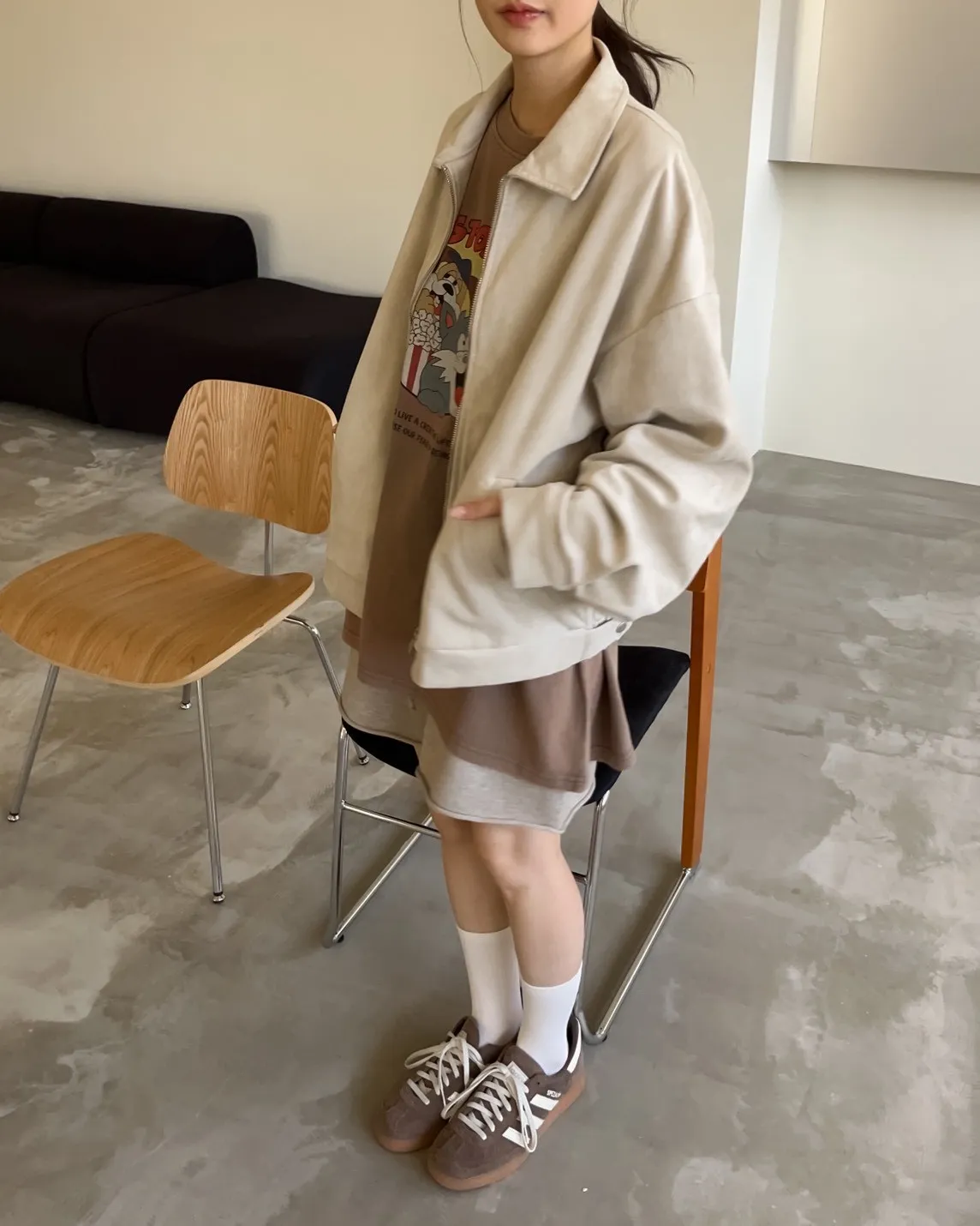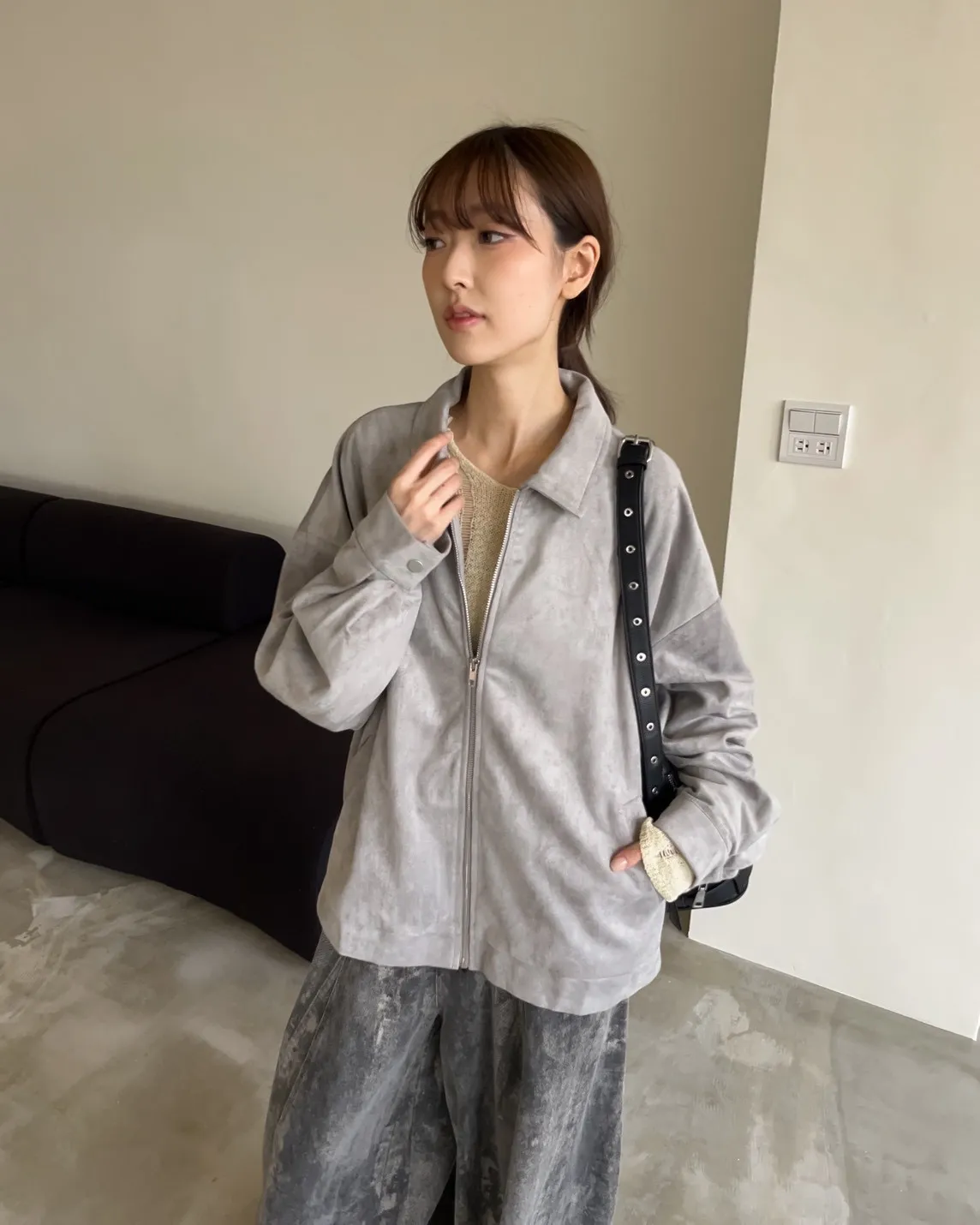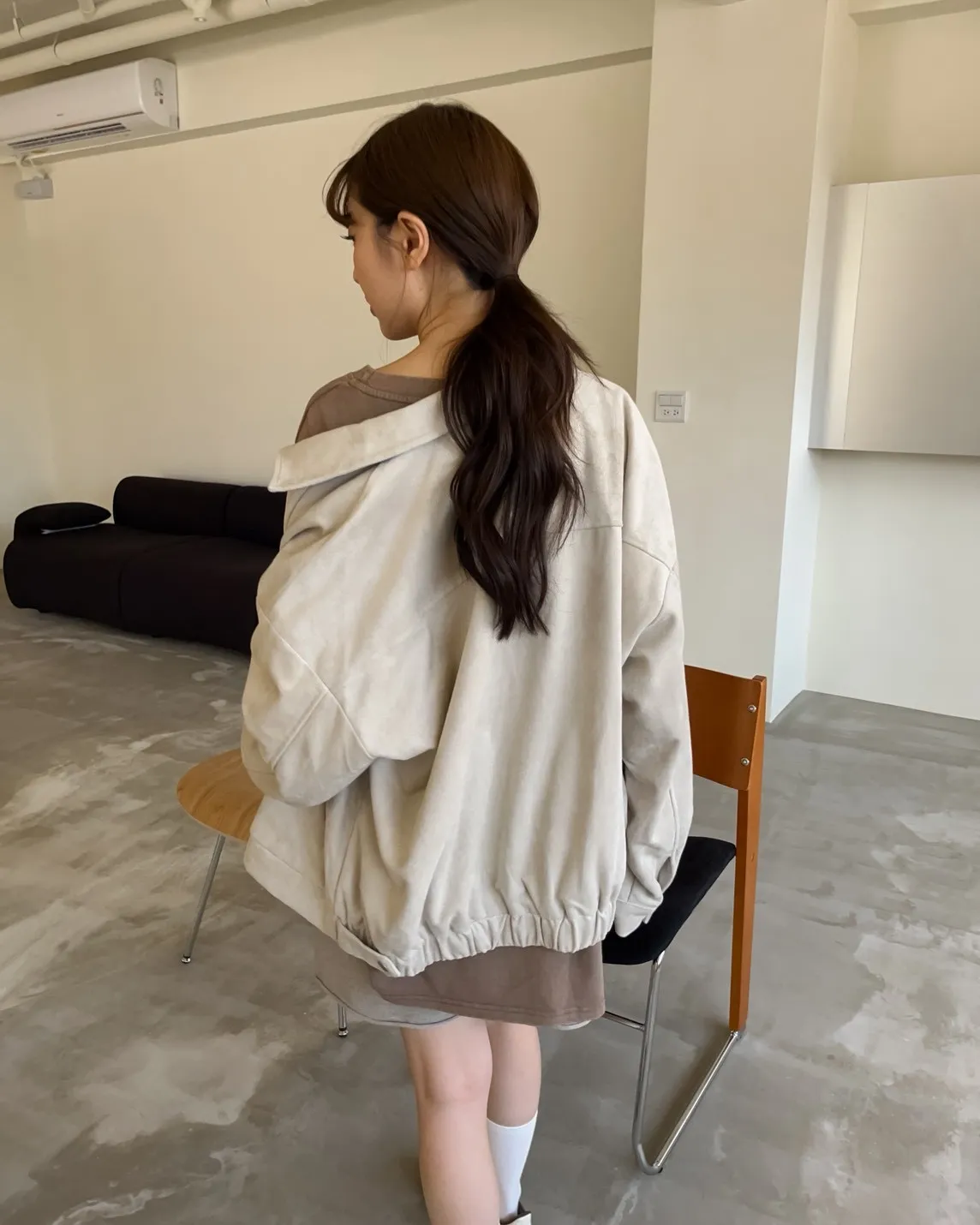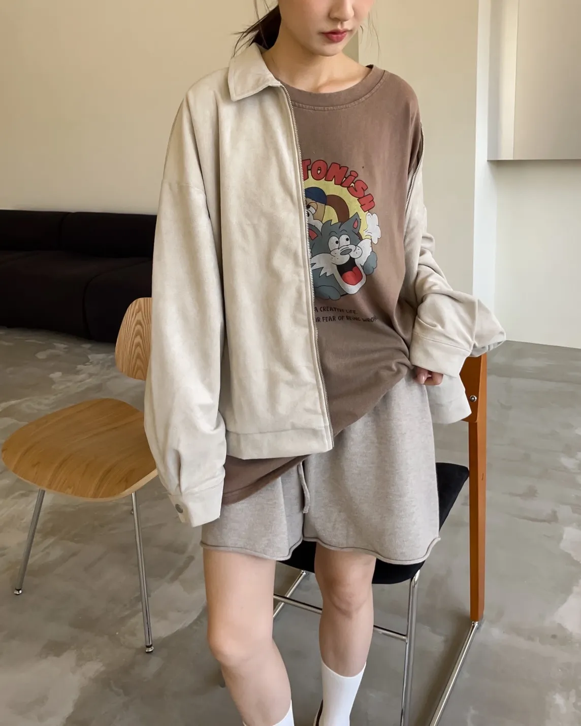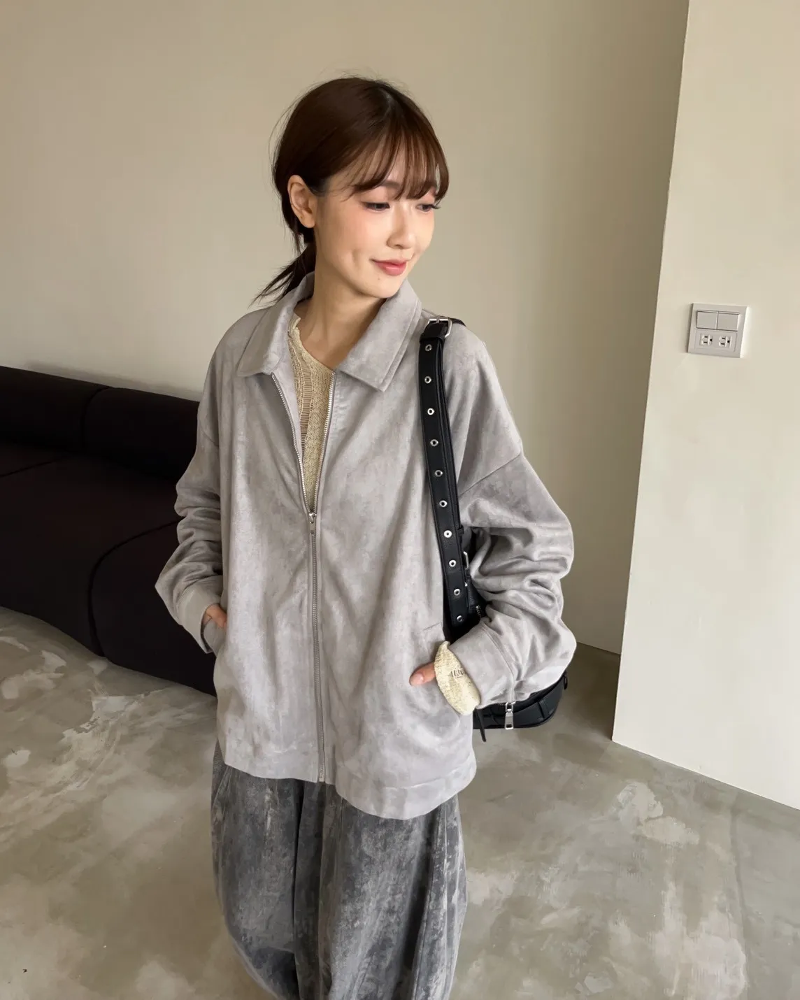 sm1901(she made)寬鬆麂皮翻領外套(杏/咖啡/灰)