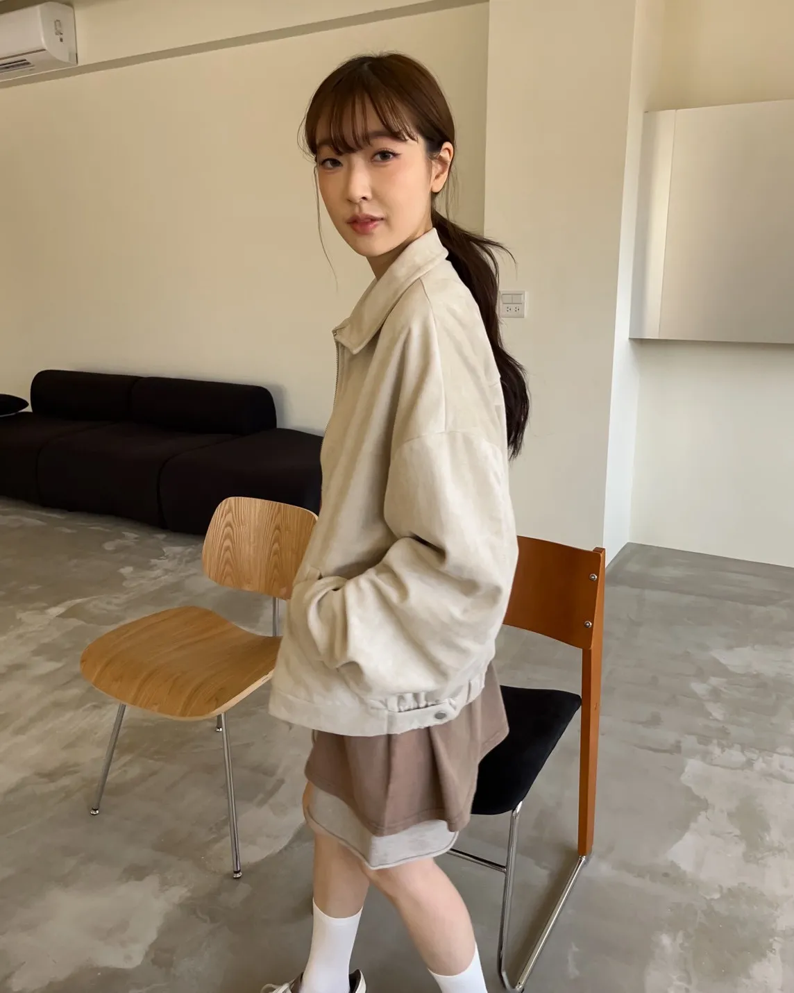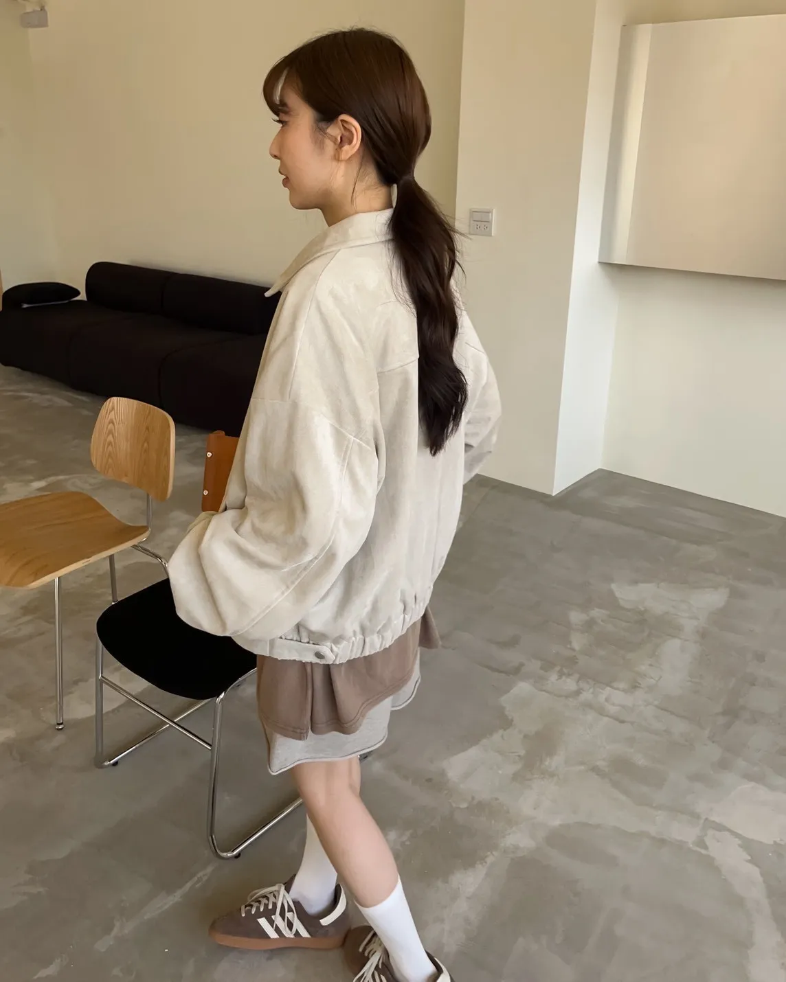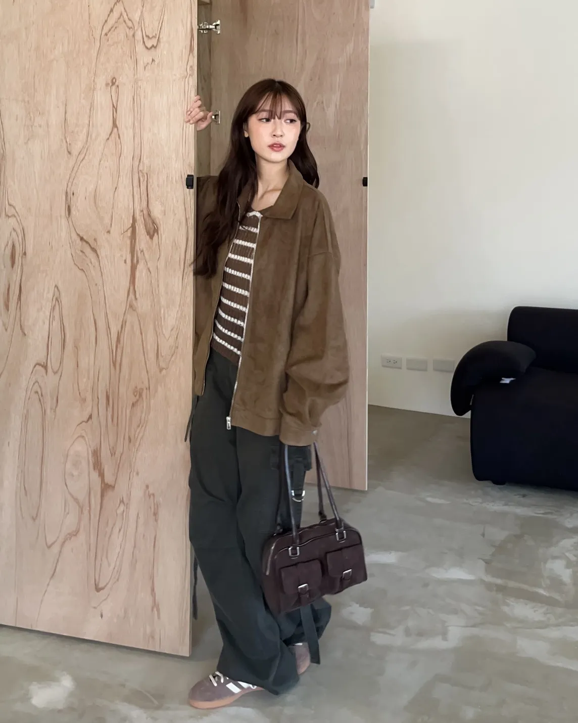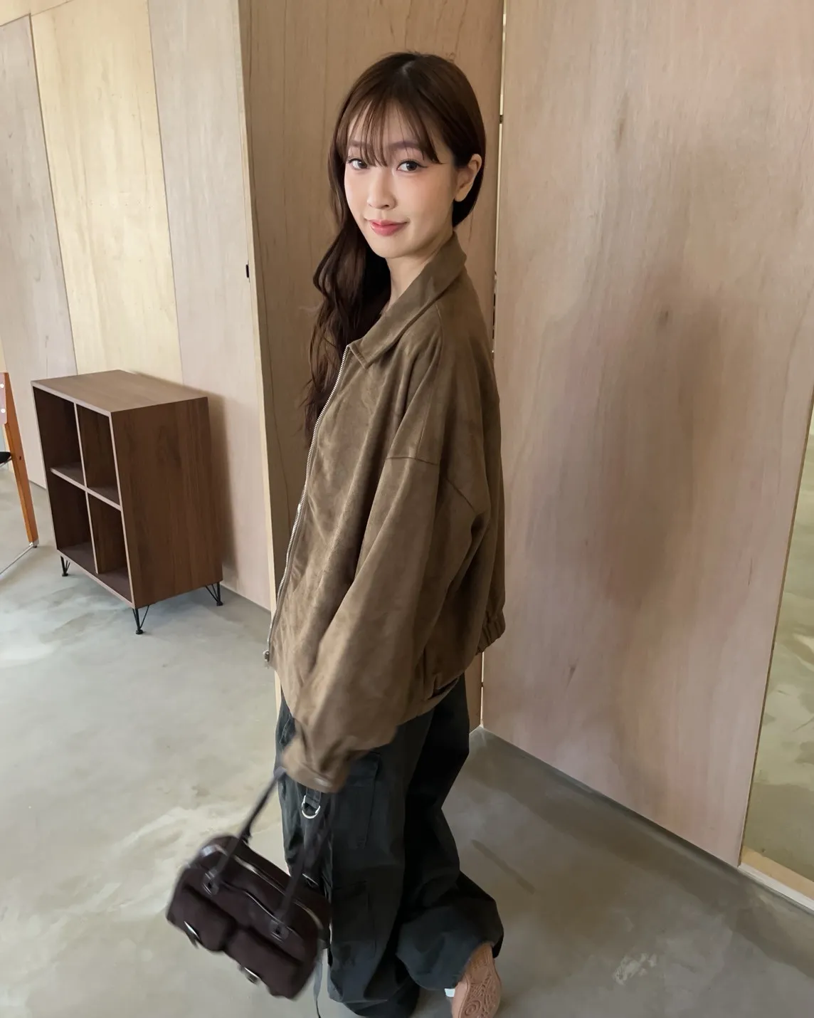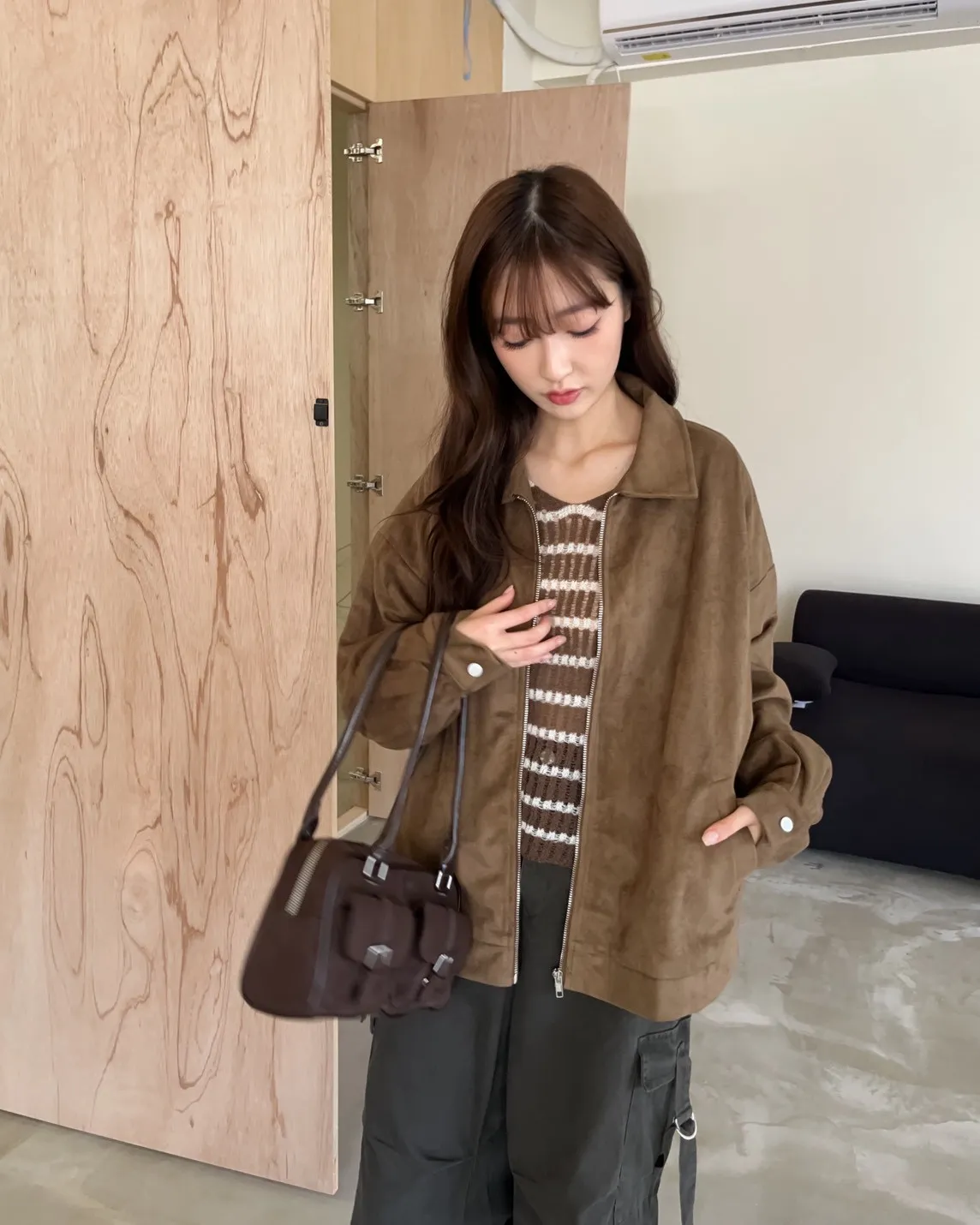 sm1901(she made)寬鬆麂皮翻領外套(杏/咖啡/灰)