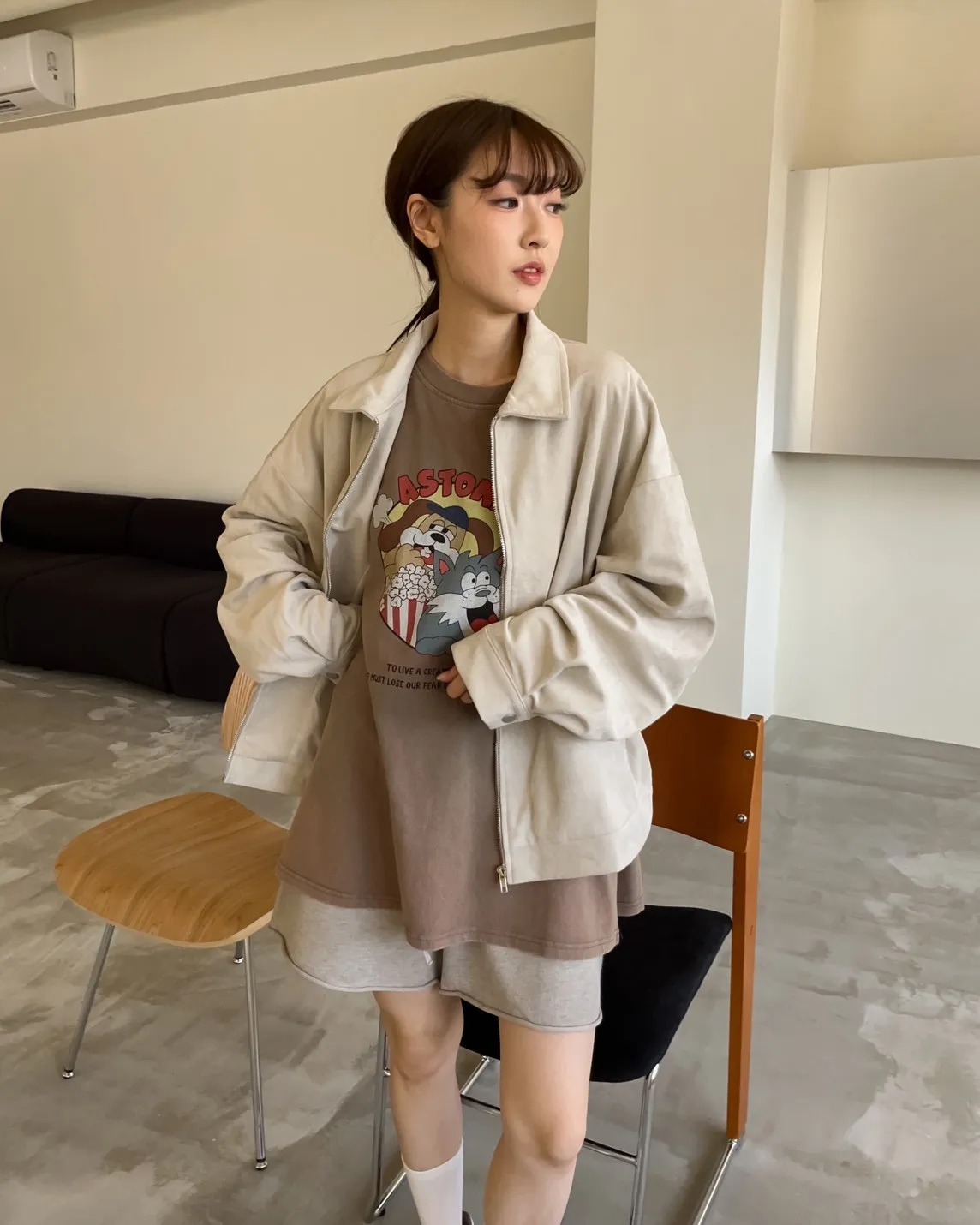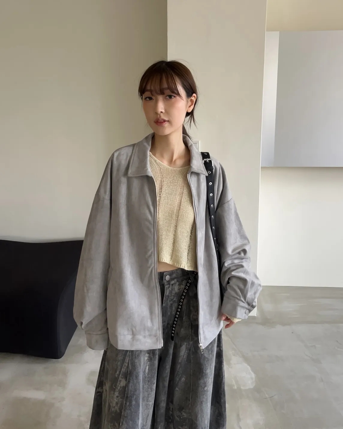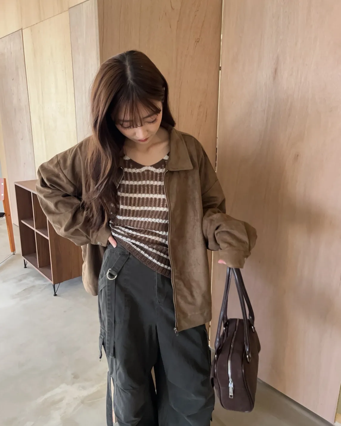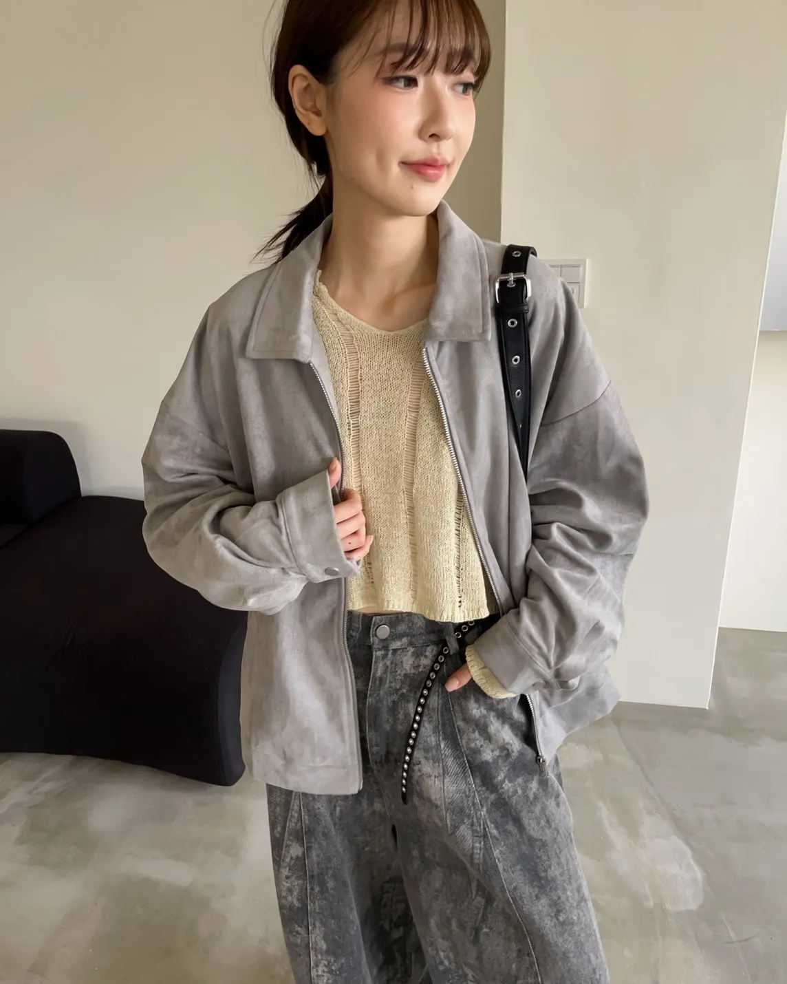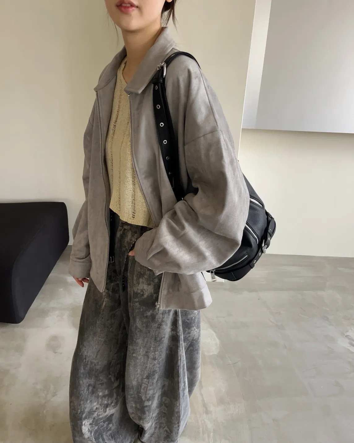 sm1901(she made)寬鬆麂皮翻領外套(杏/咖啡/灰)