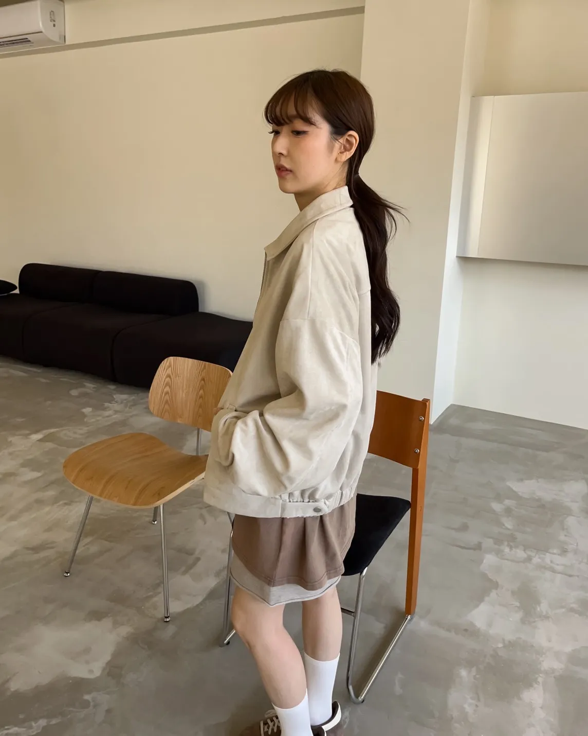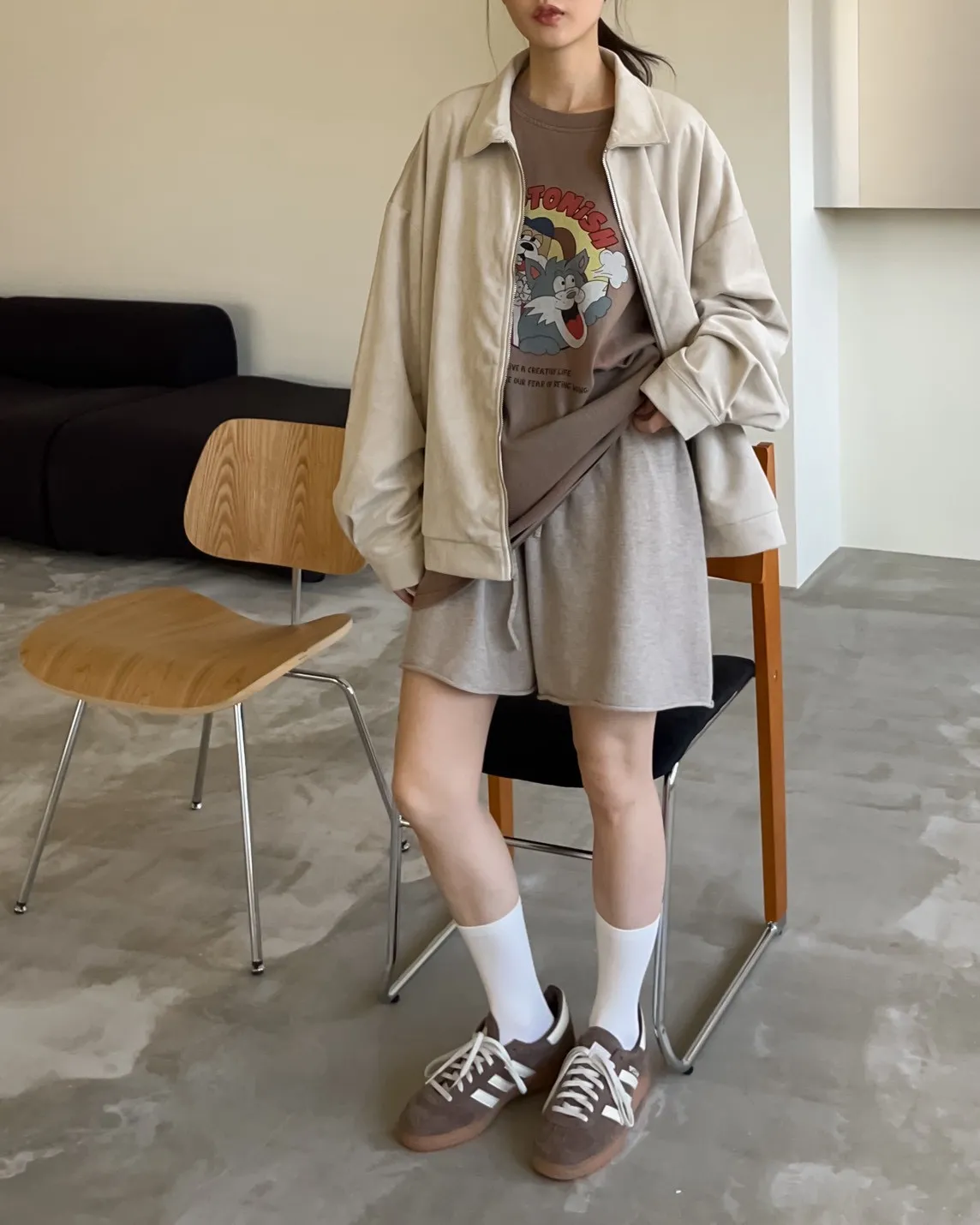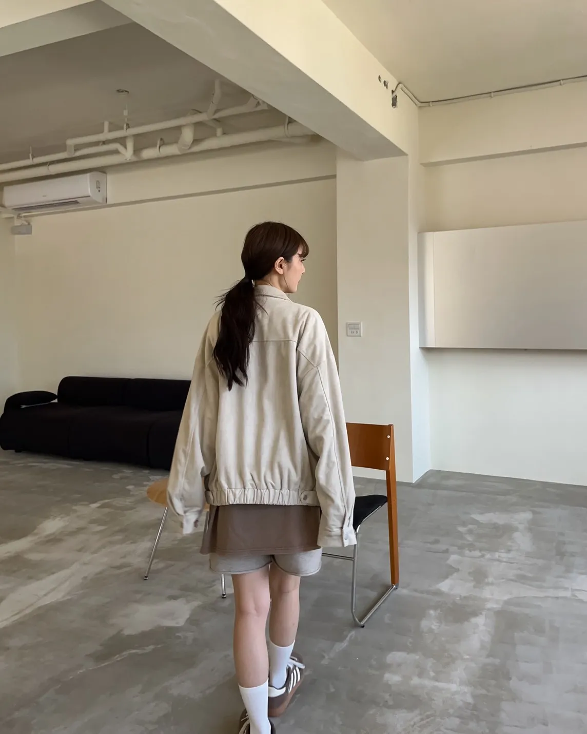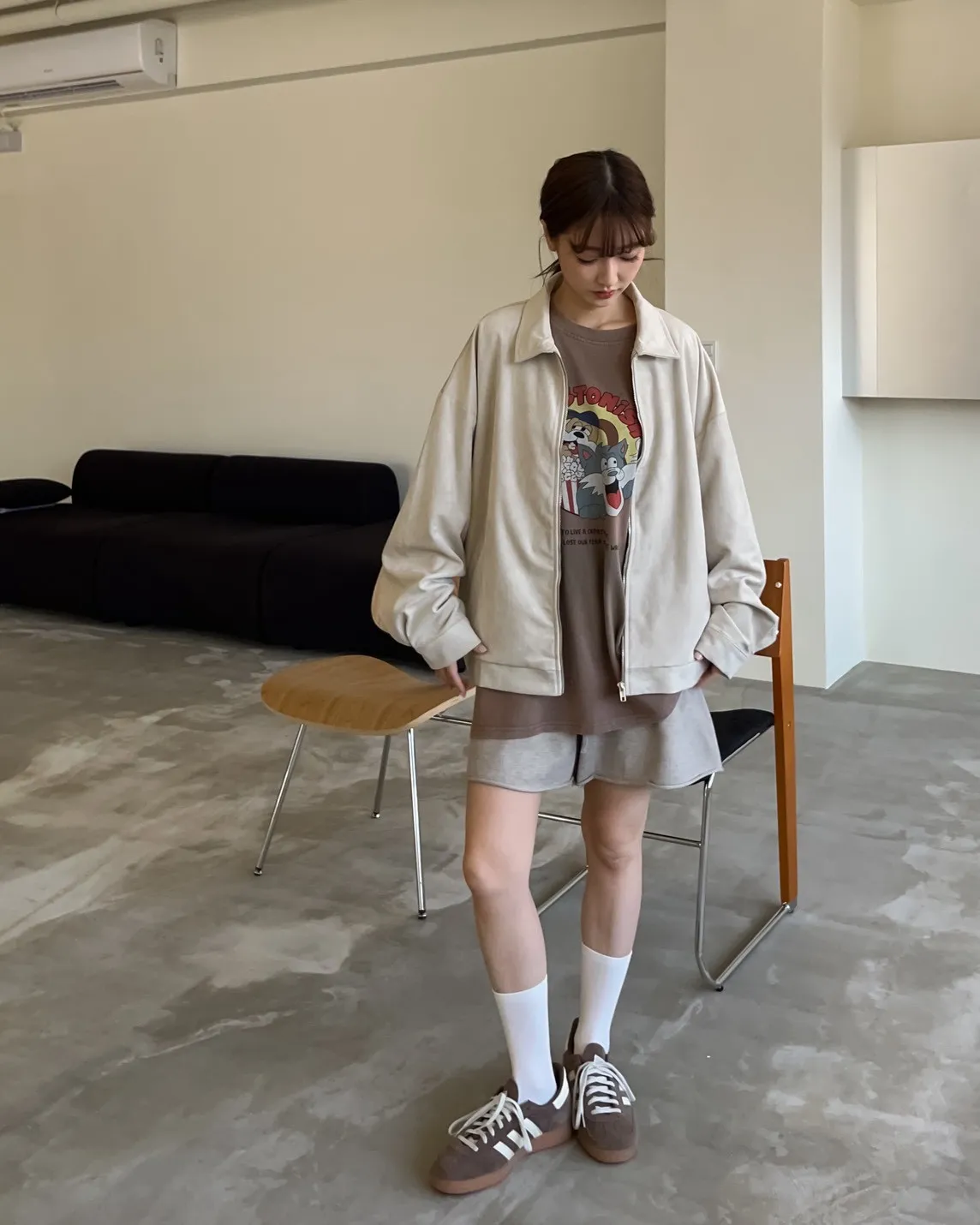 sm1901(she made)寬鬆麂皮翻領外套(杏/咖啡/灰)
