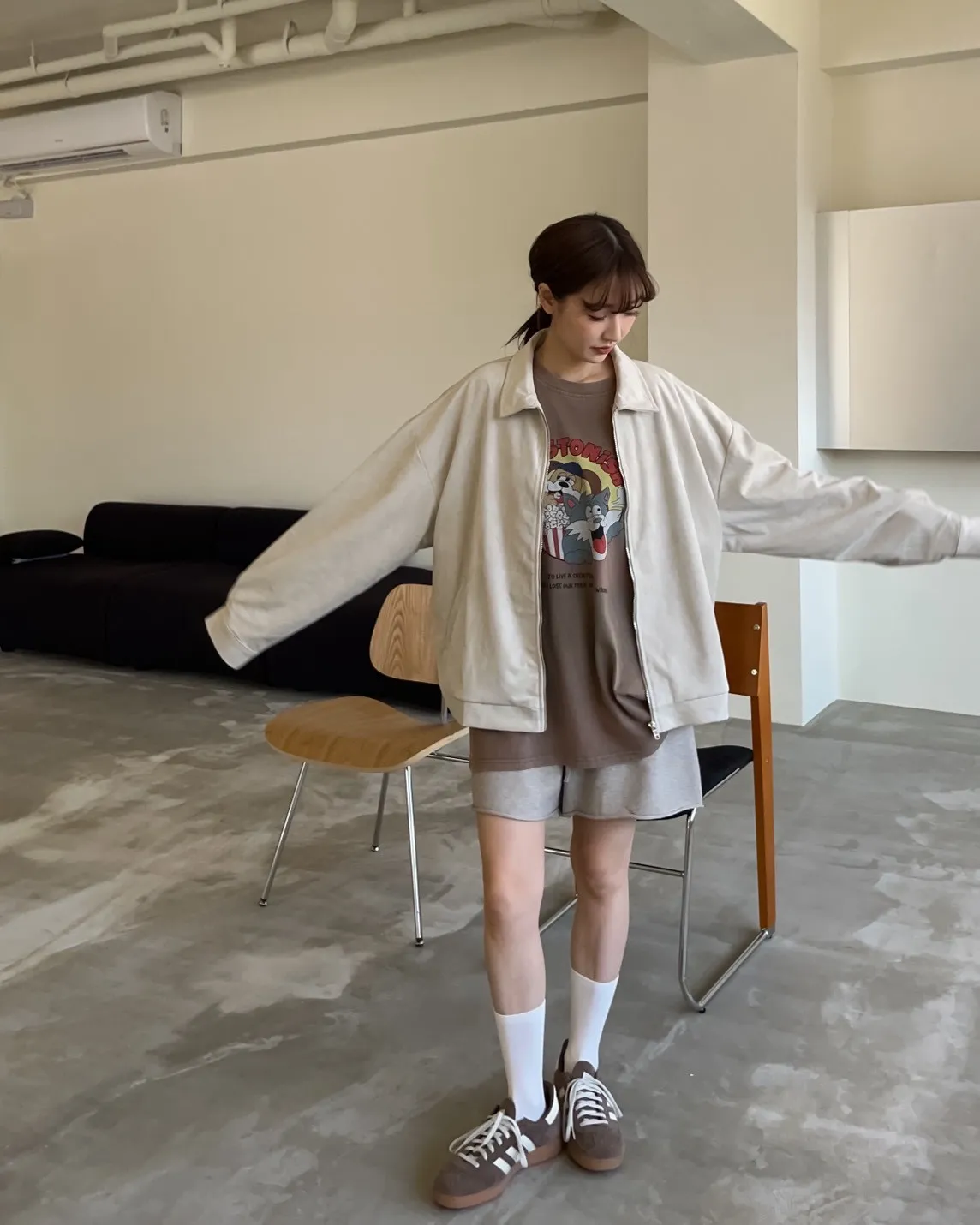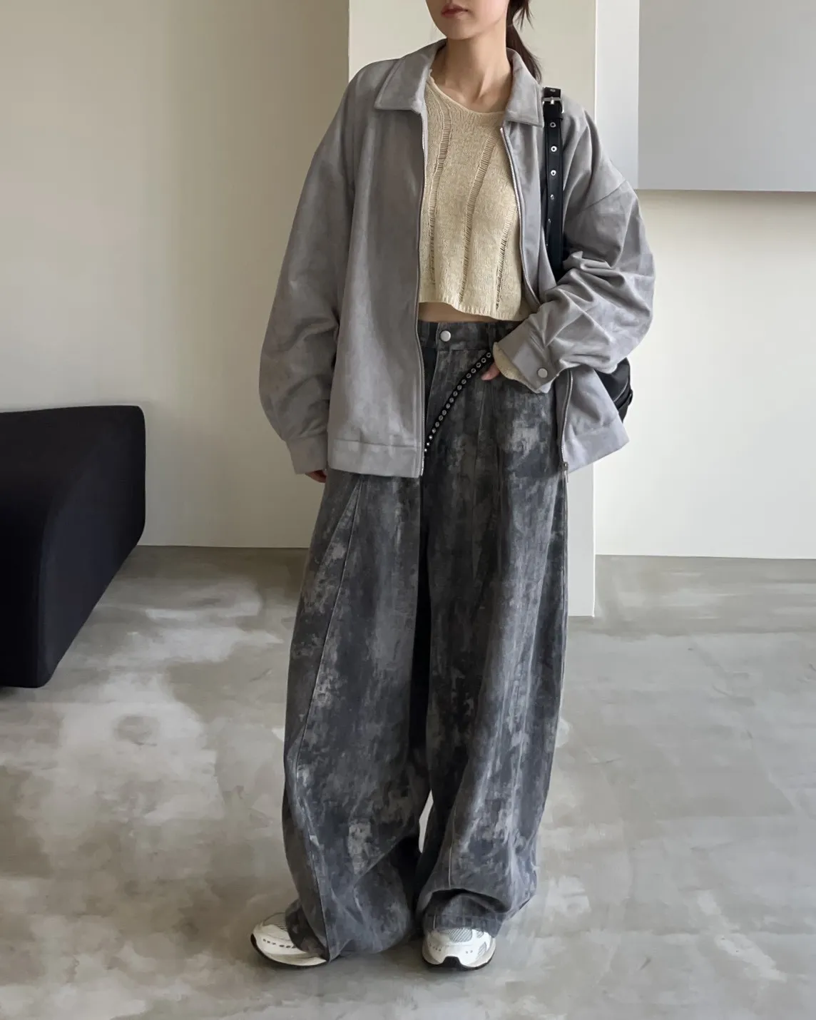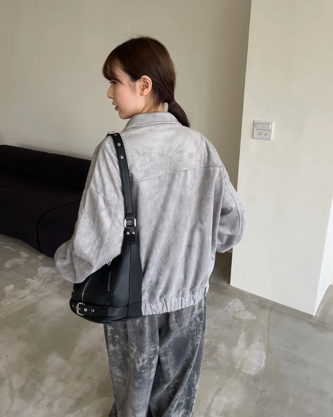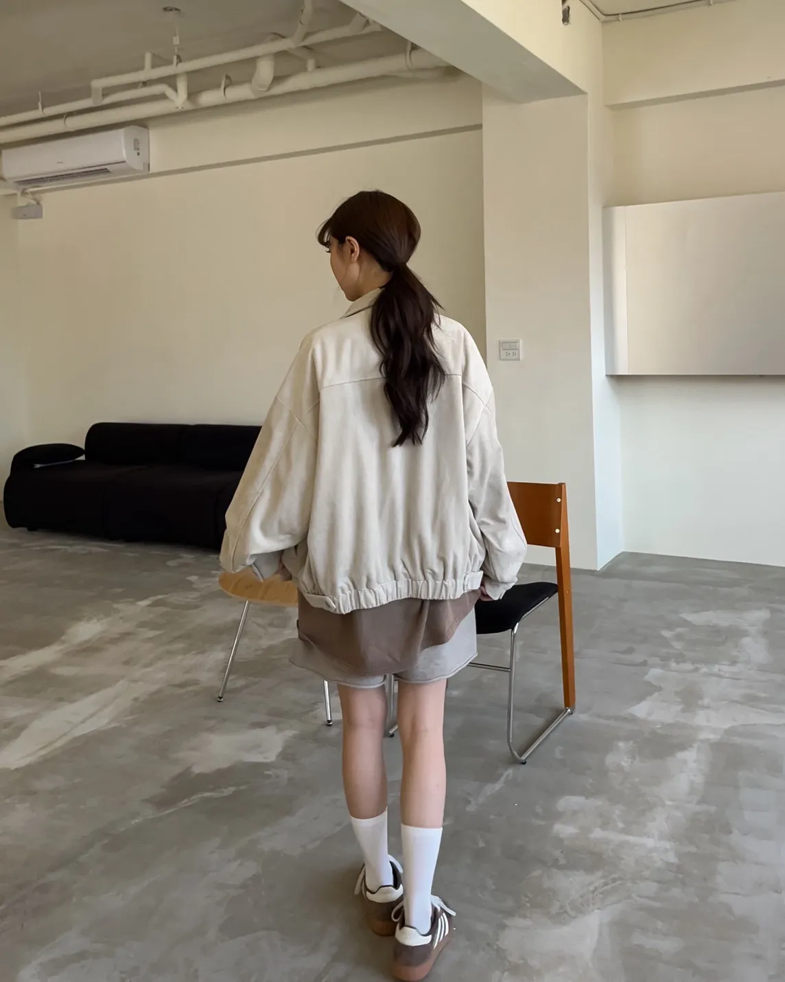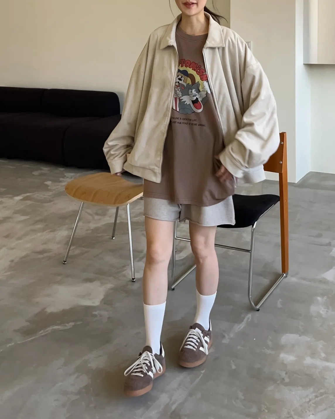 sm1901(she made)寬鬆麂皮翻領外套(杏/咖啡/灰)