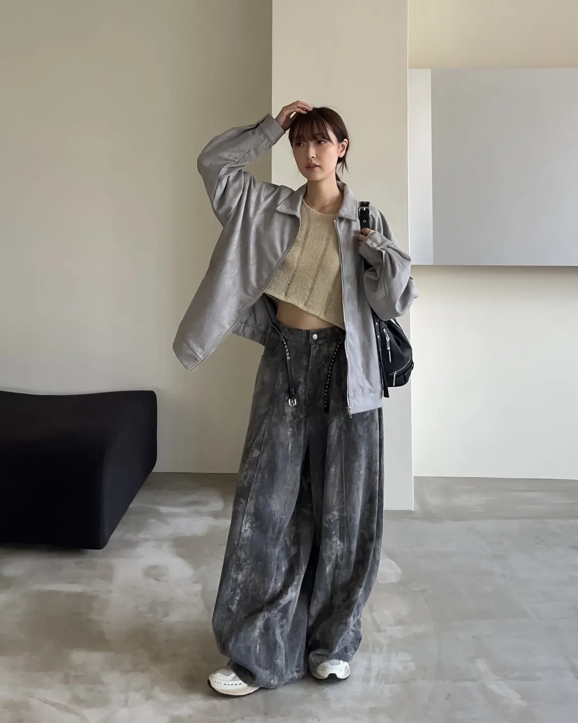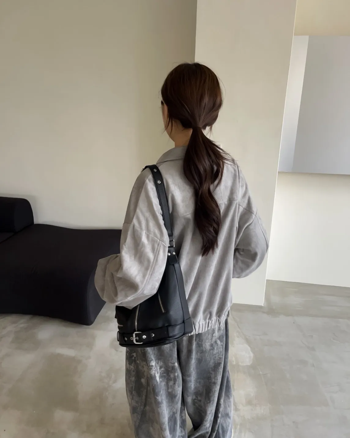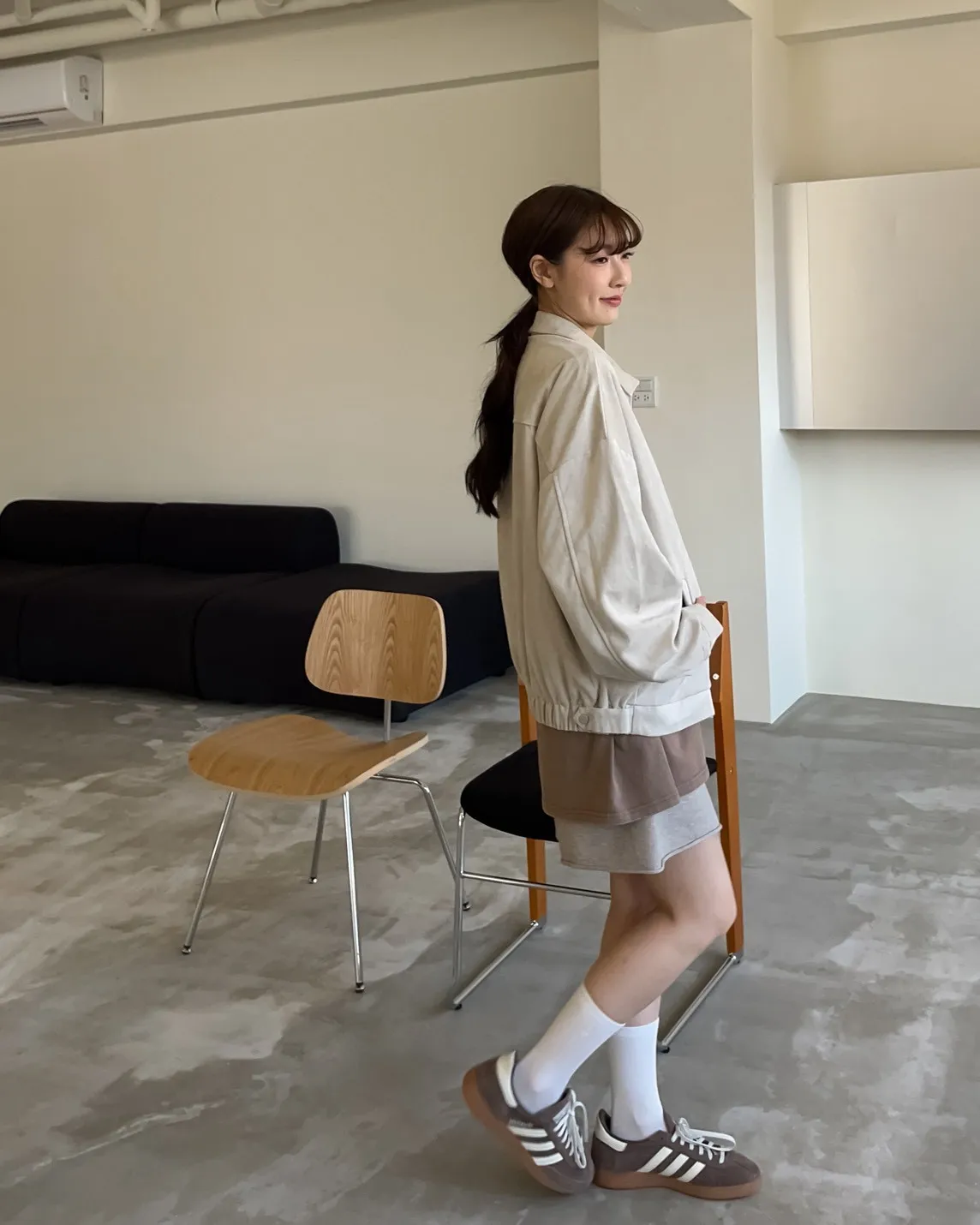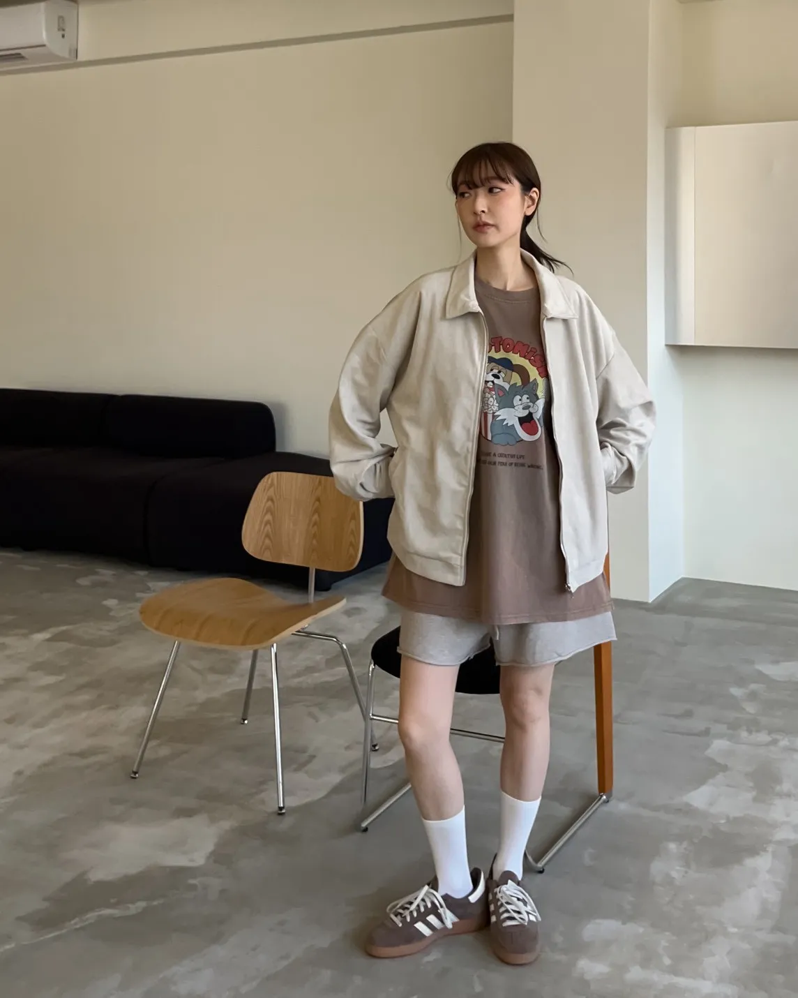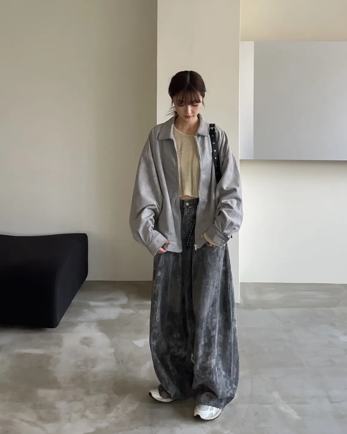 sm1901(she made)寬鬆麂皮翻領外套(杏/咖啡/灰)