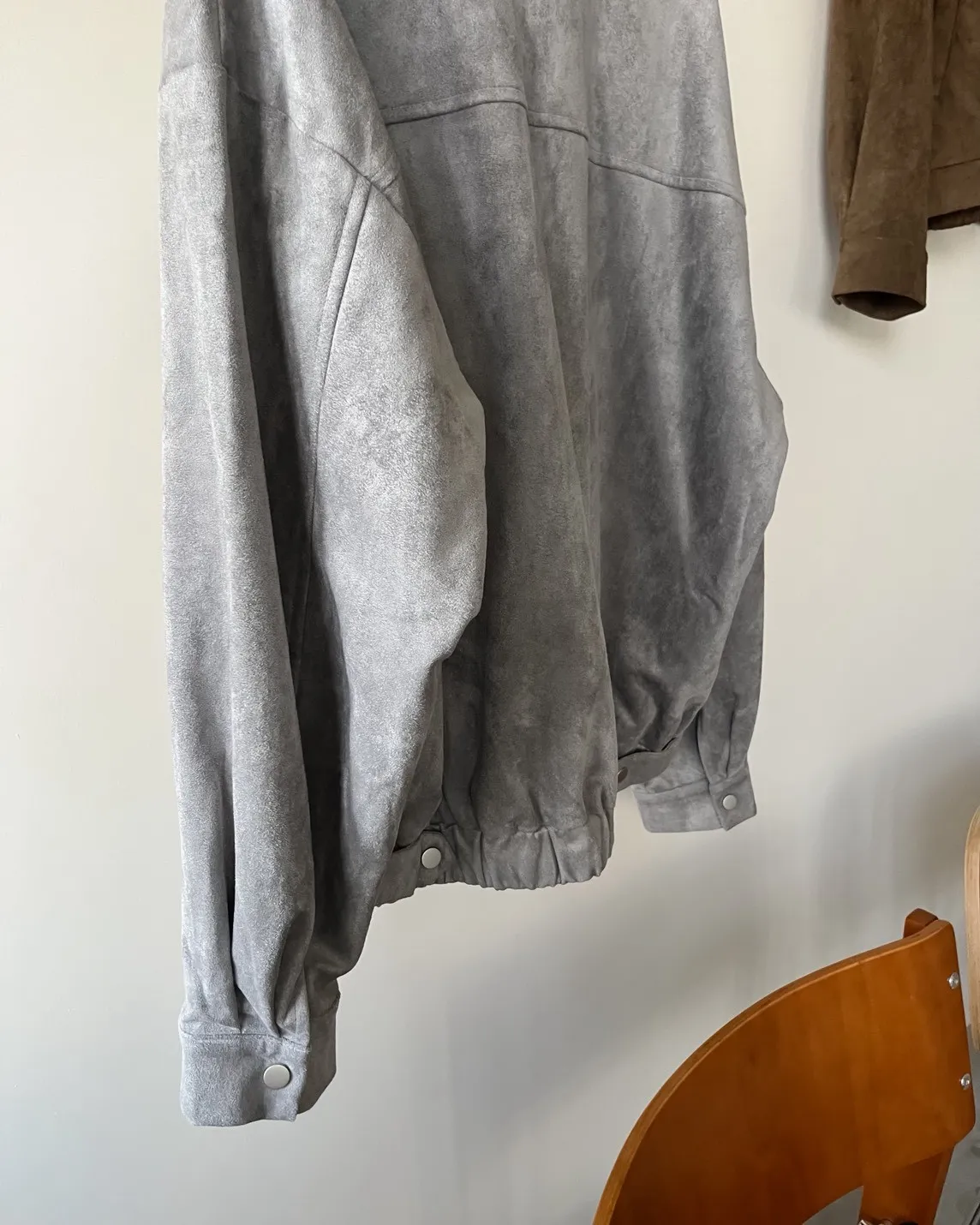 秋冬超百搭!! 翻領 有內襯 麂皮無彈性 兩側口袋 寬鬆落肩 下擺後鬆緊 袖口鈕扣