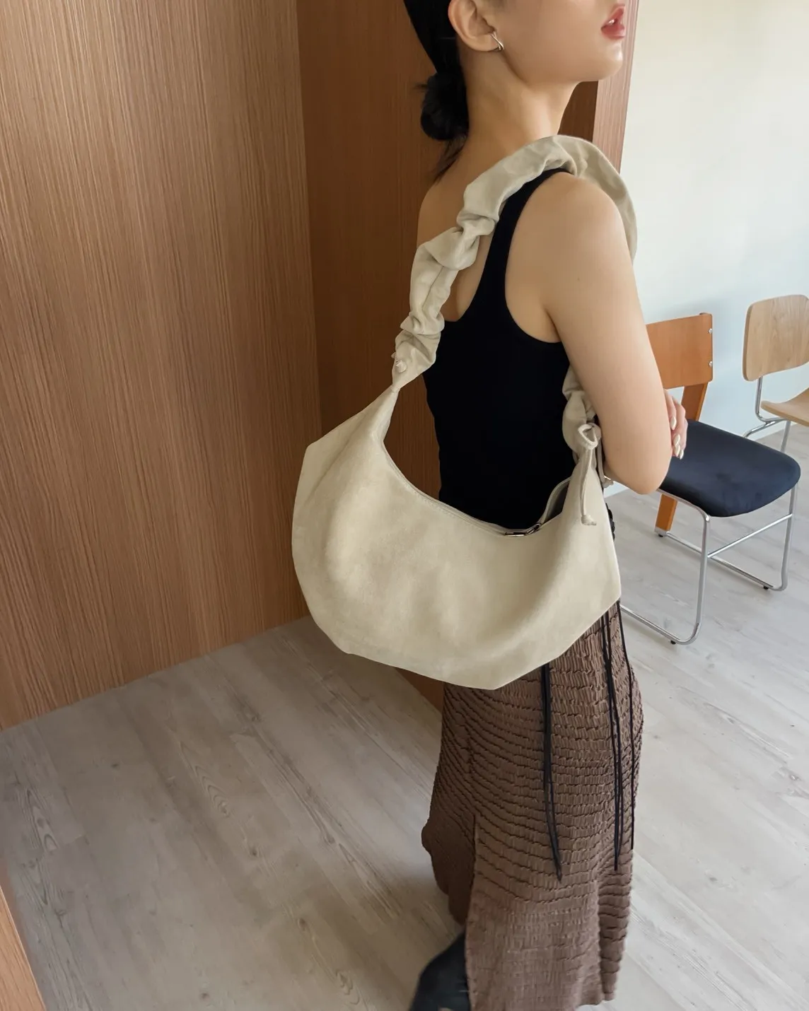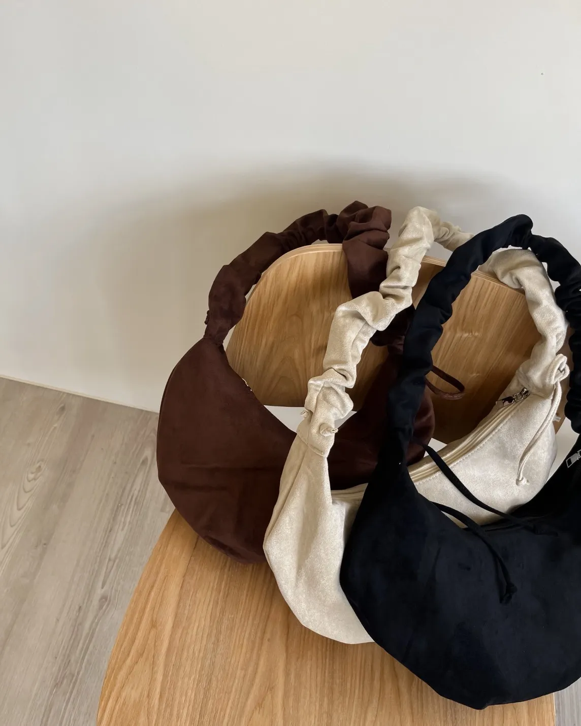 V0047美拉德絨布半月包(杏/咖啡/黑)