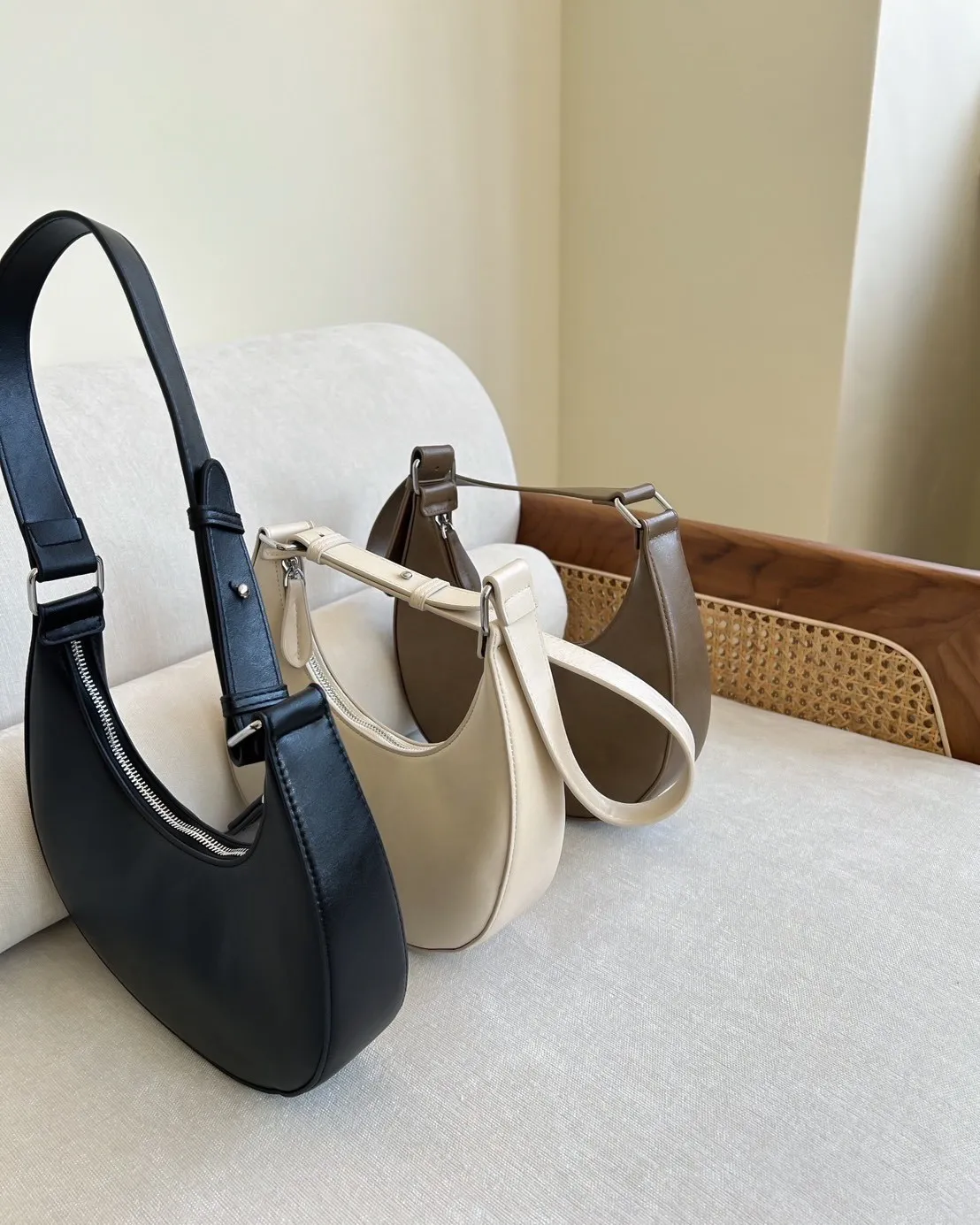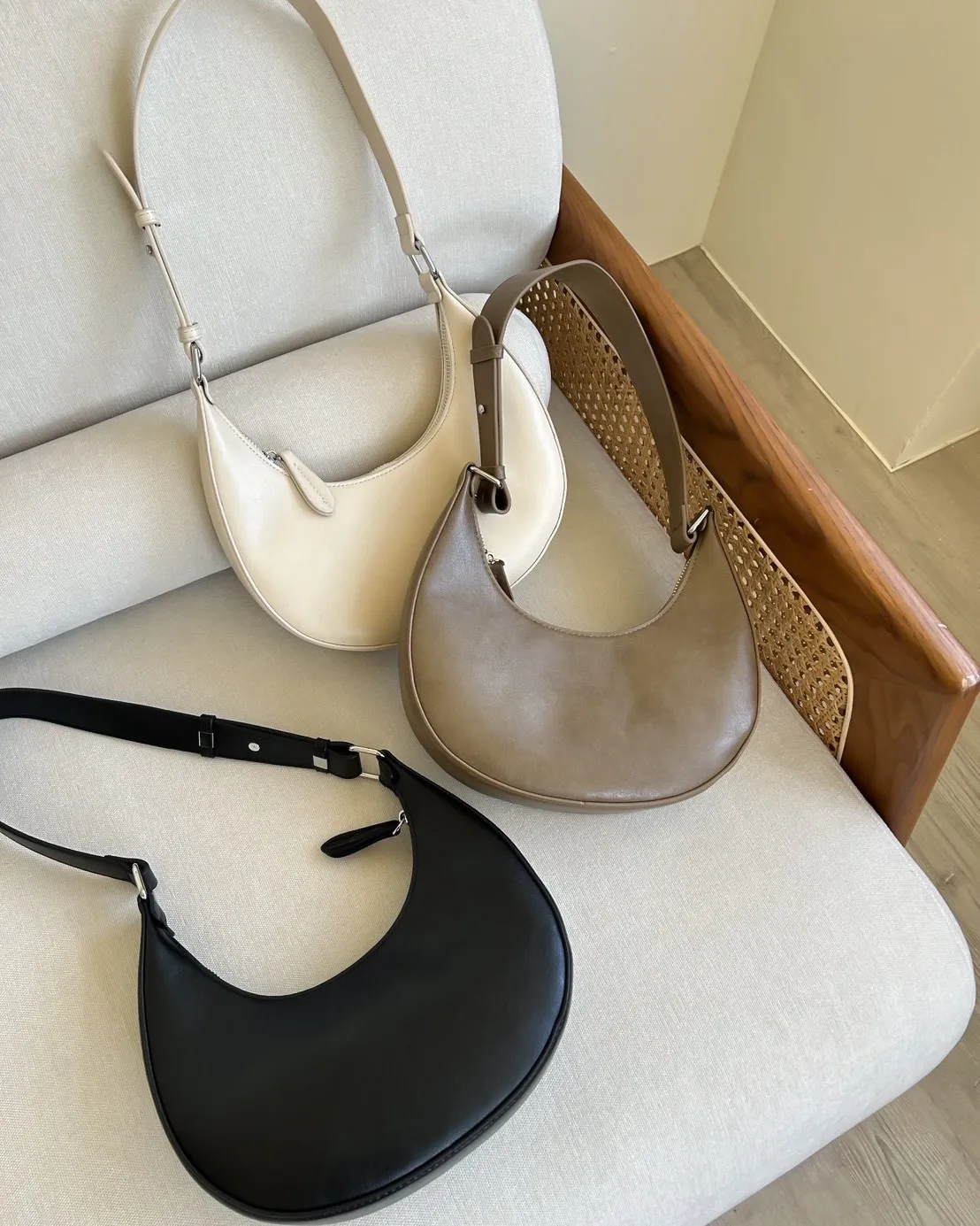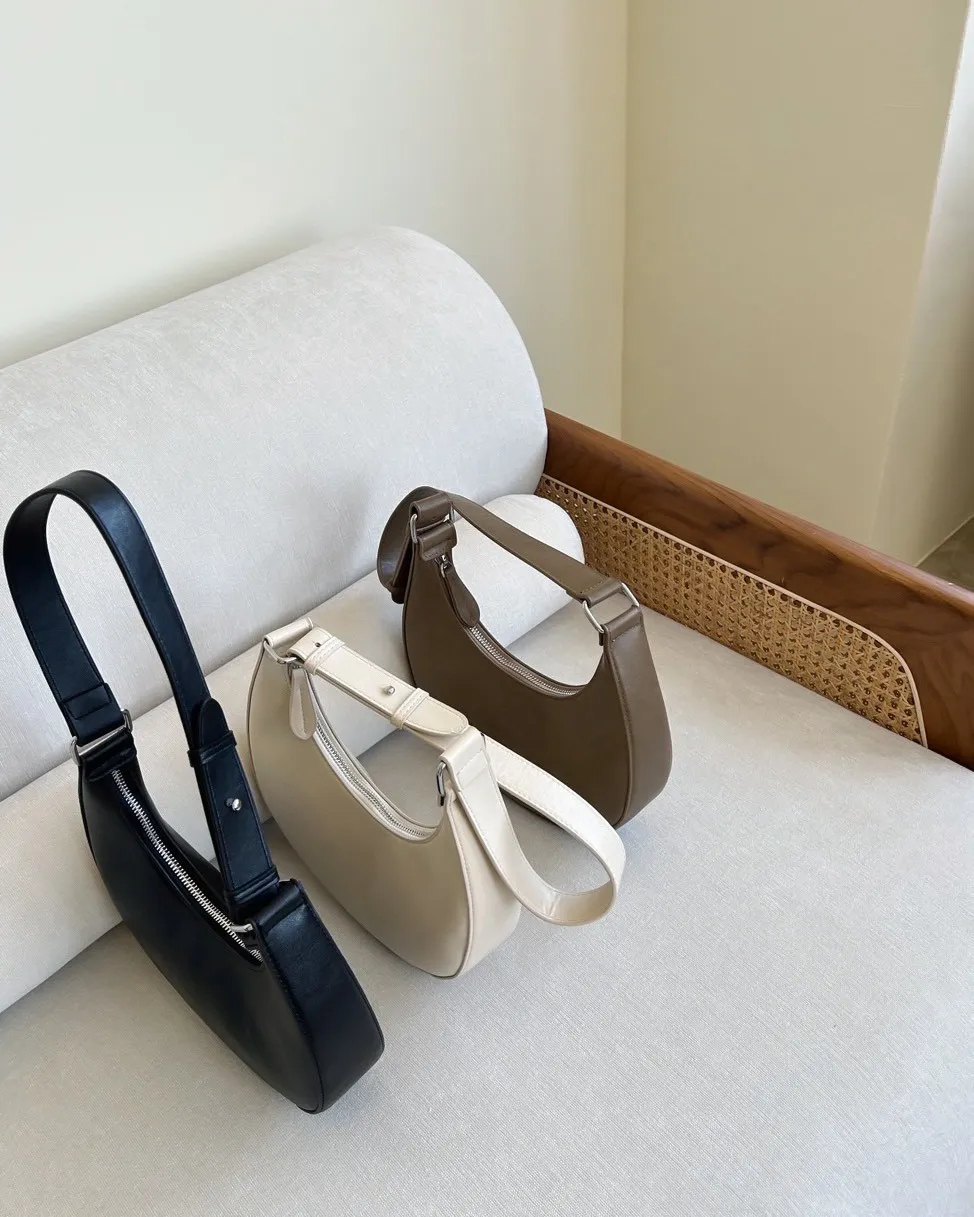 A0046質感半月腋下包(米白/咖啡/黑)