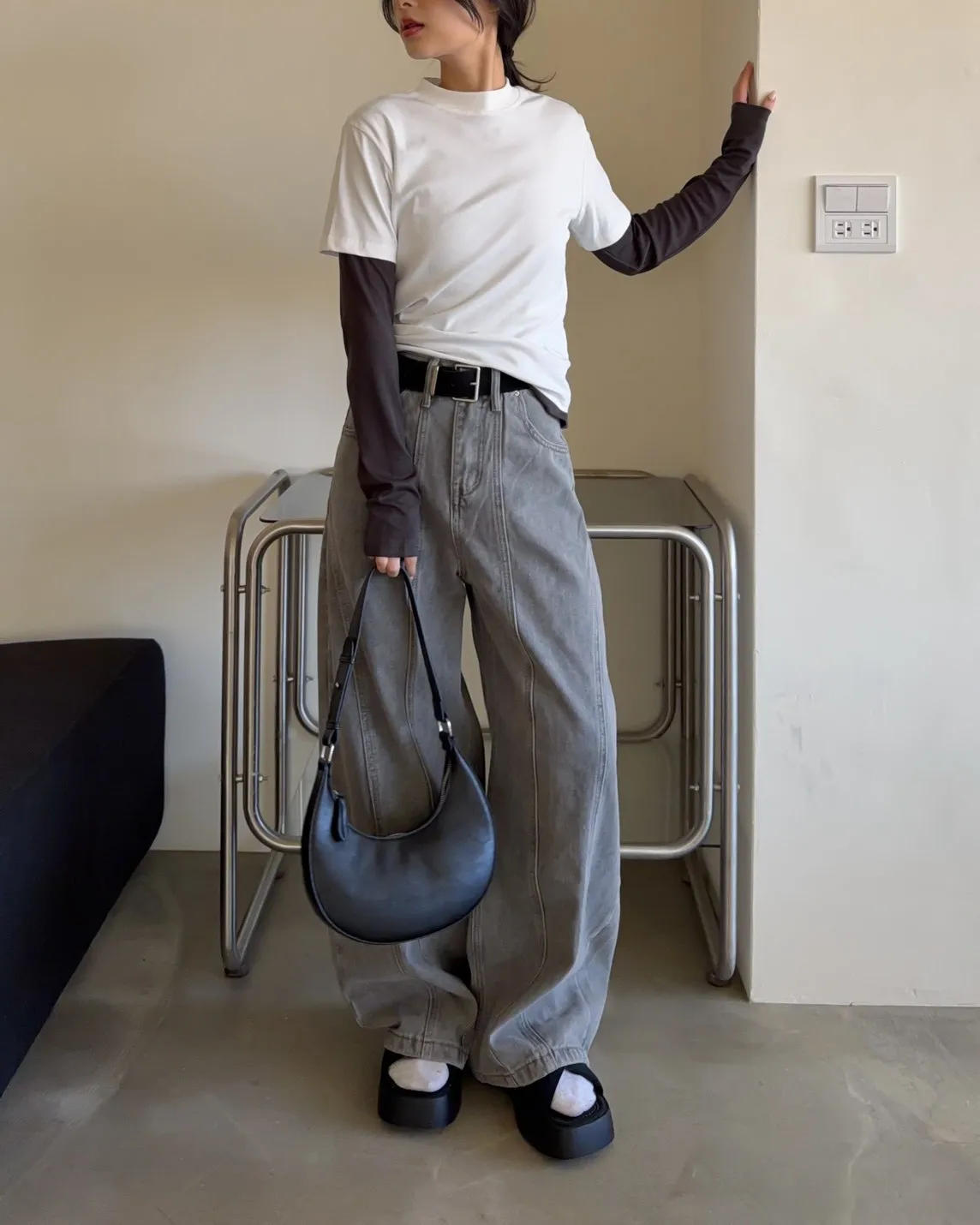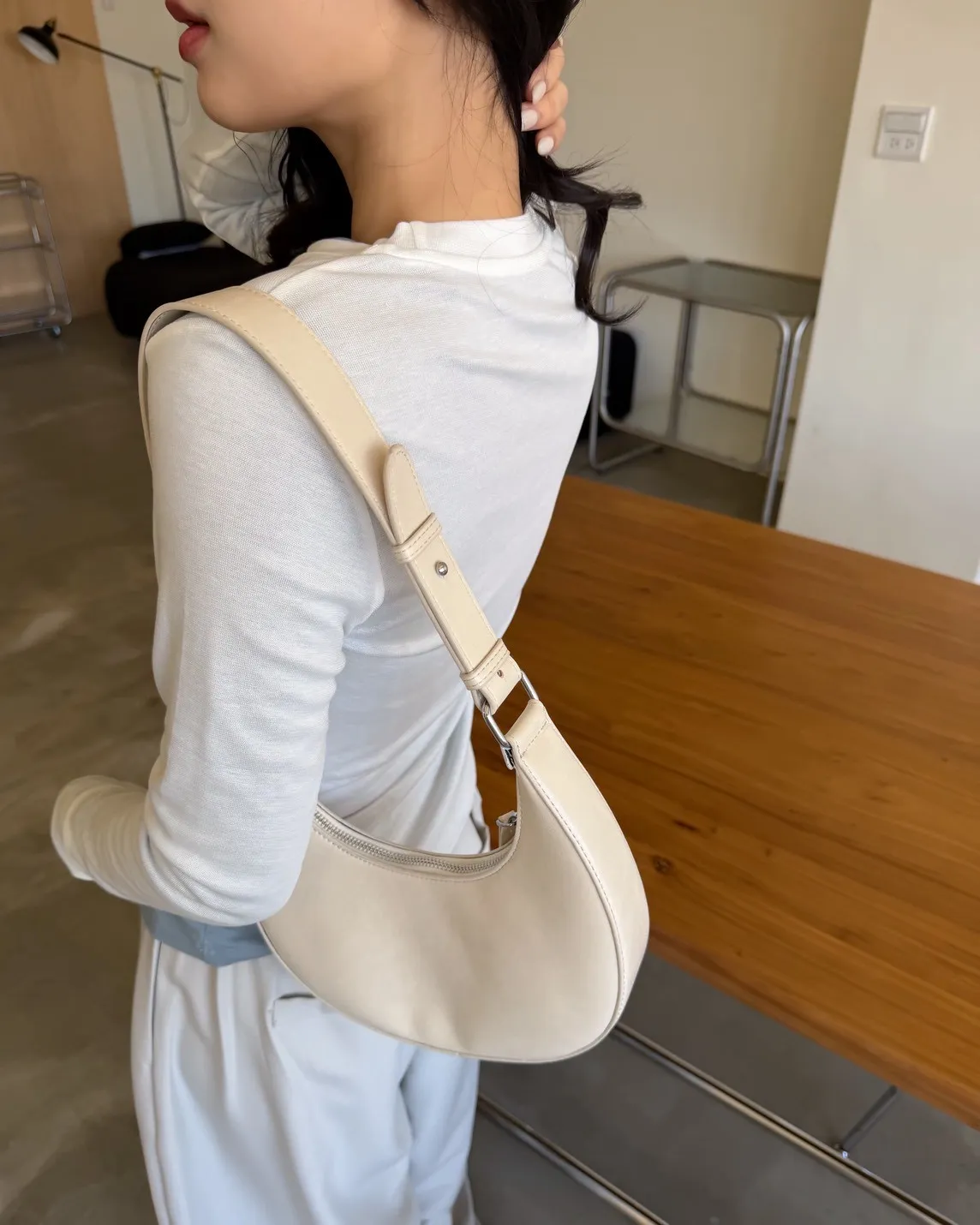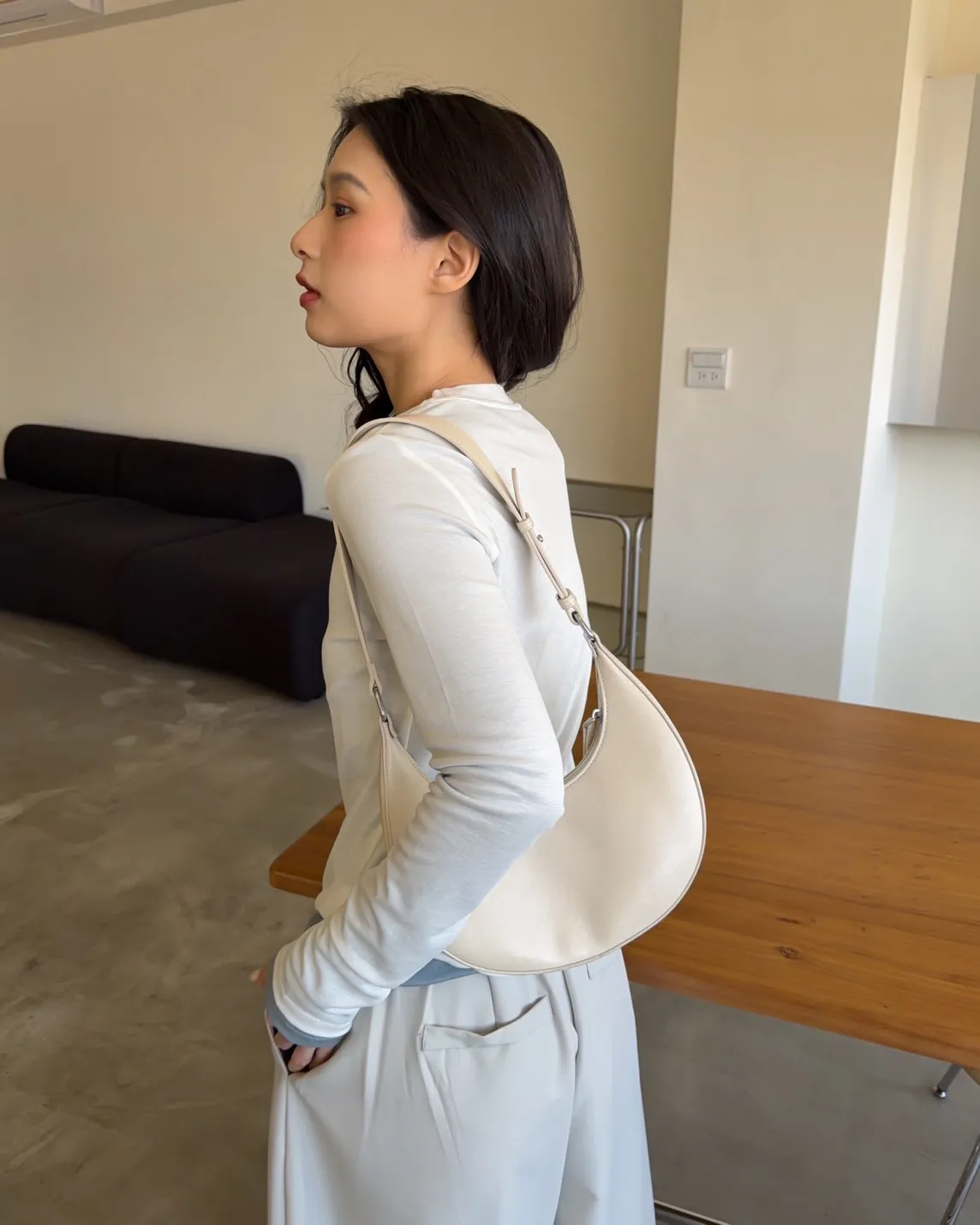 A0046質感半月腋下包(米白/咖啡/黑)