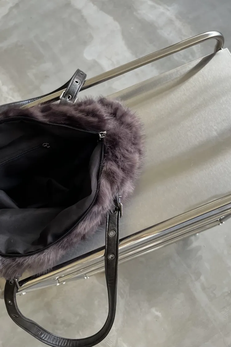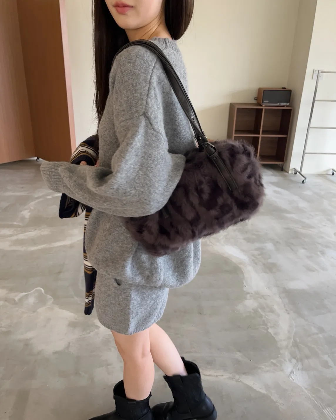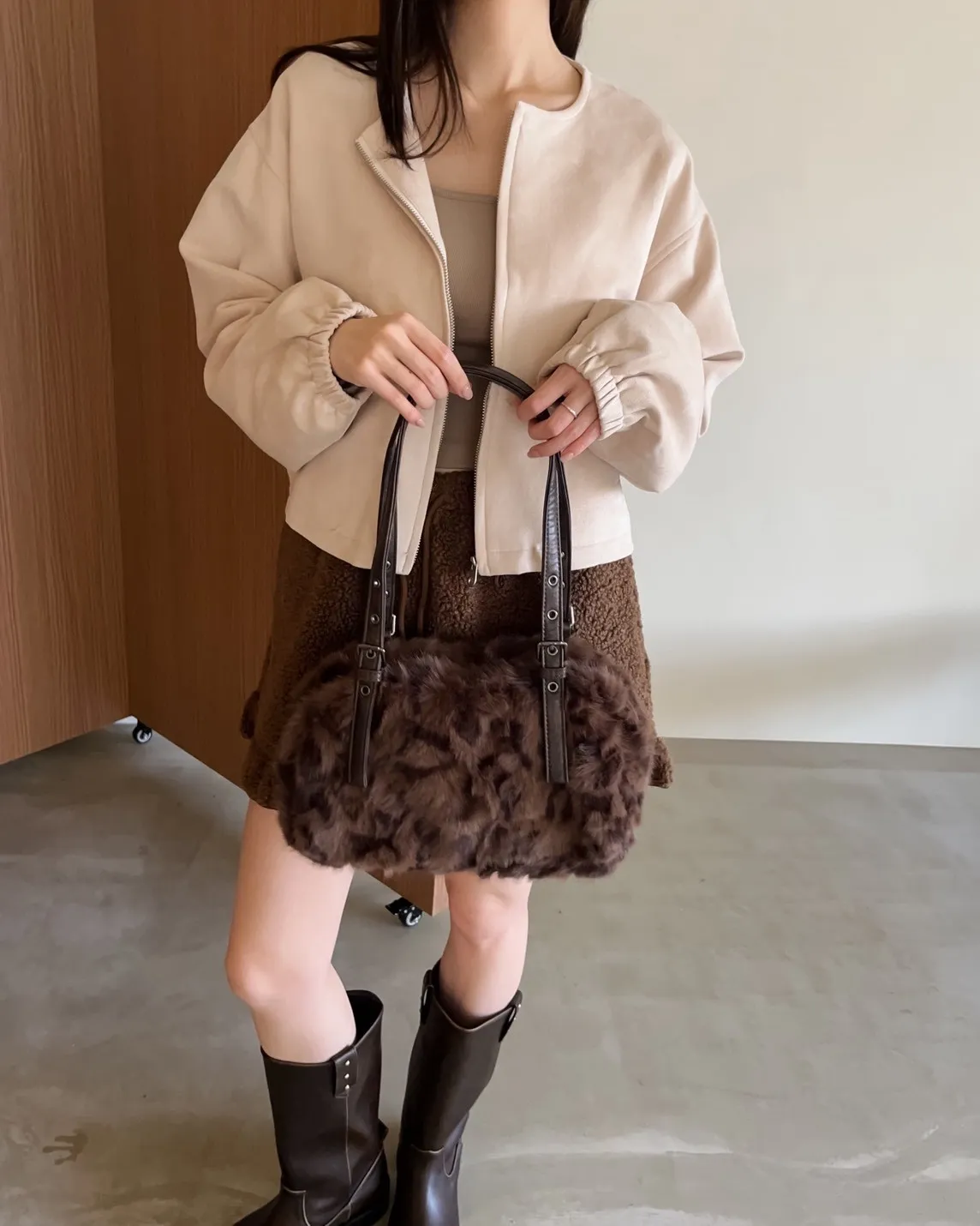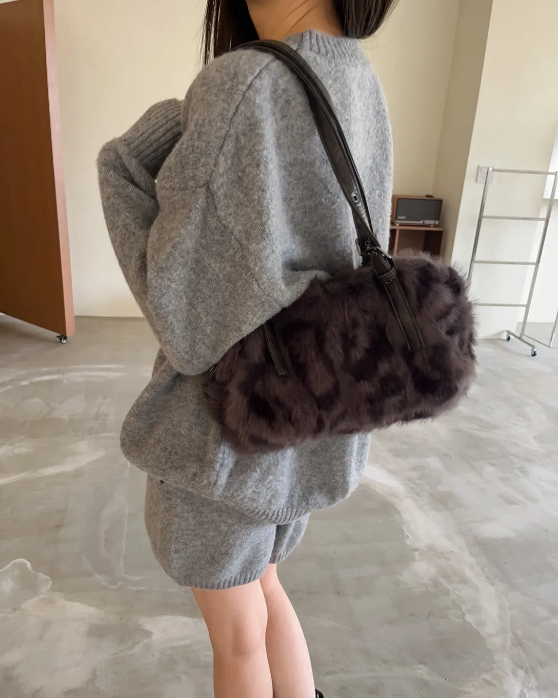 W0019是一隻貓咪吧毛絨絨包(咖啡/灰)