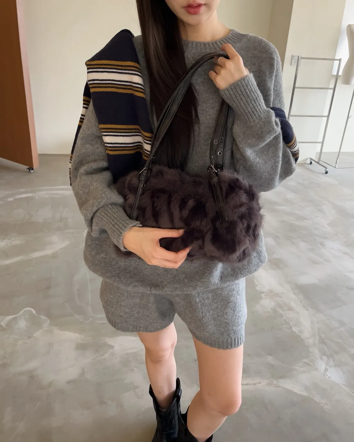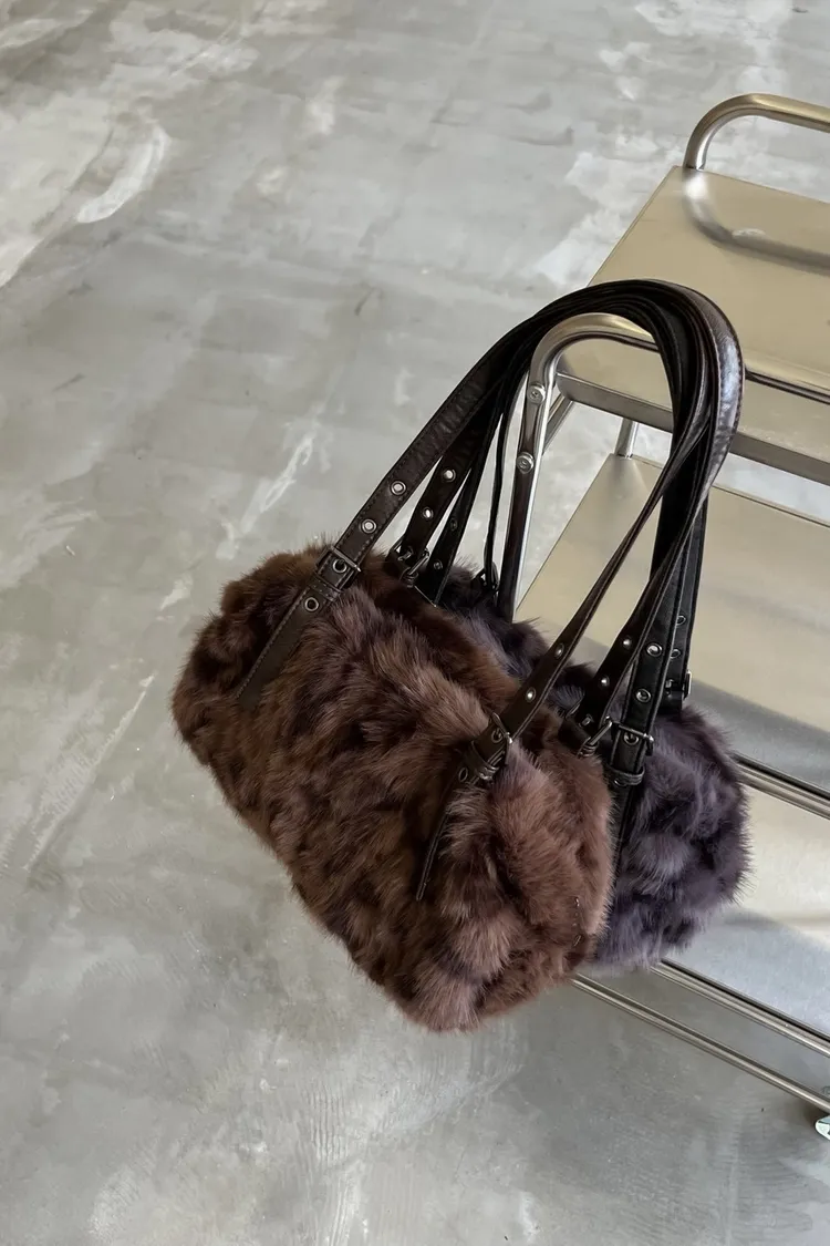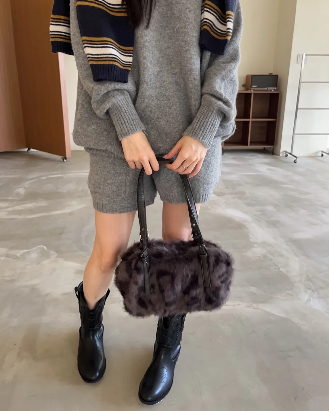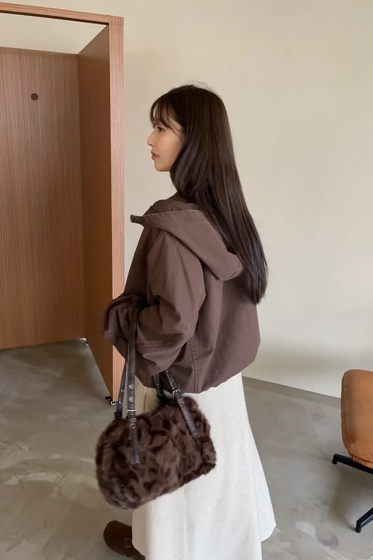 W0019是一隻貓咪吧毛絨絨包(咖啡/灰)