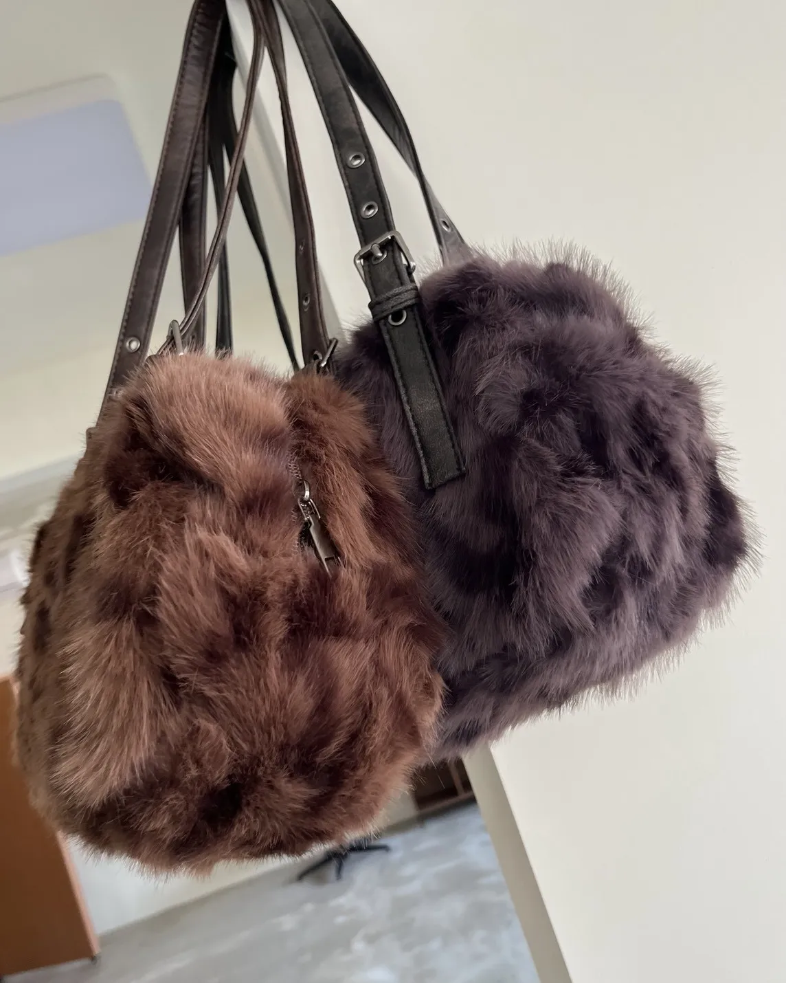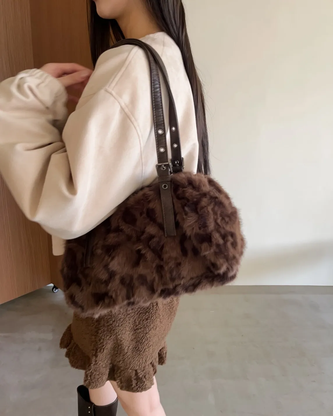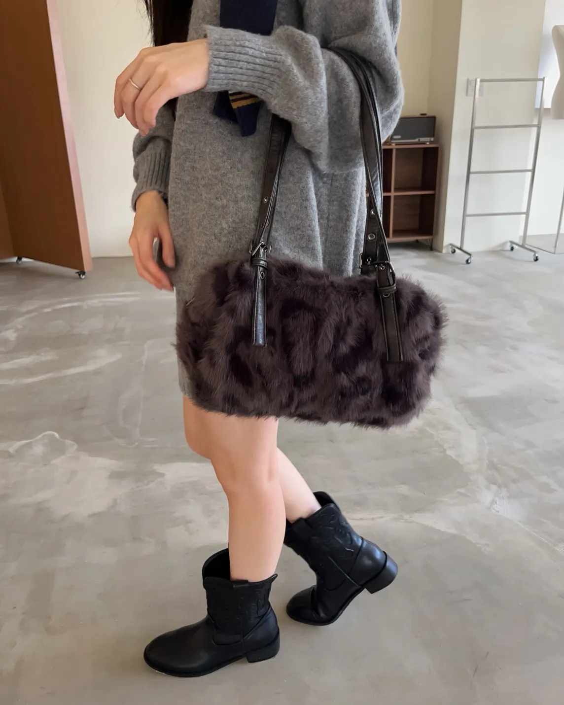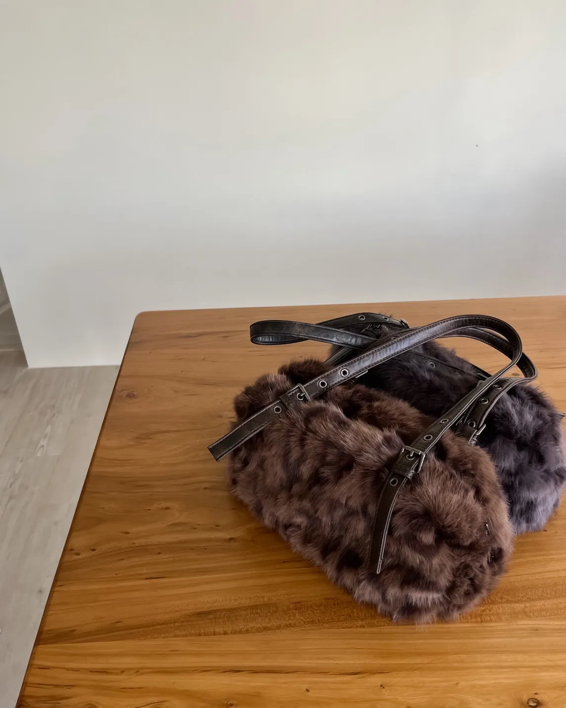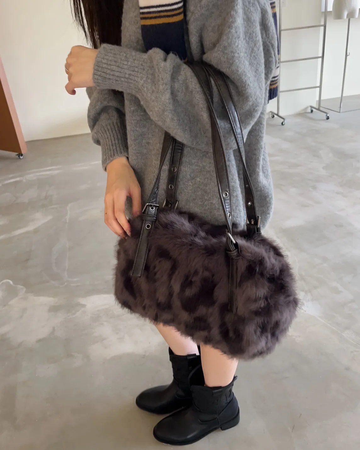 皮革背帶 作舊刷色 可以調整長度 內有一個拉鏈夾層 毛超級超級軟!!! 拉鍊開口不卡毛 色塊斑點