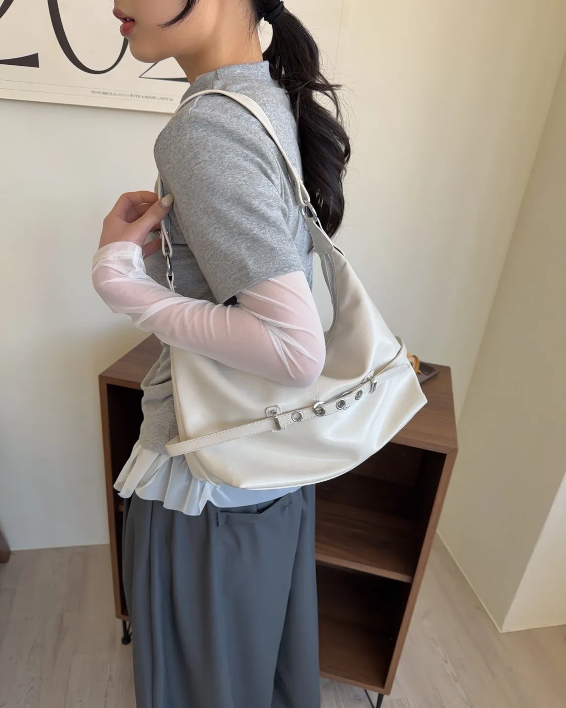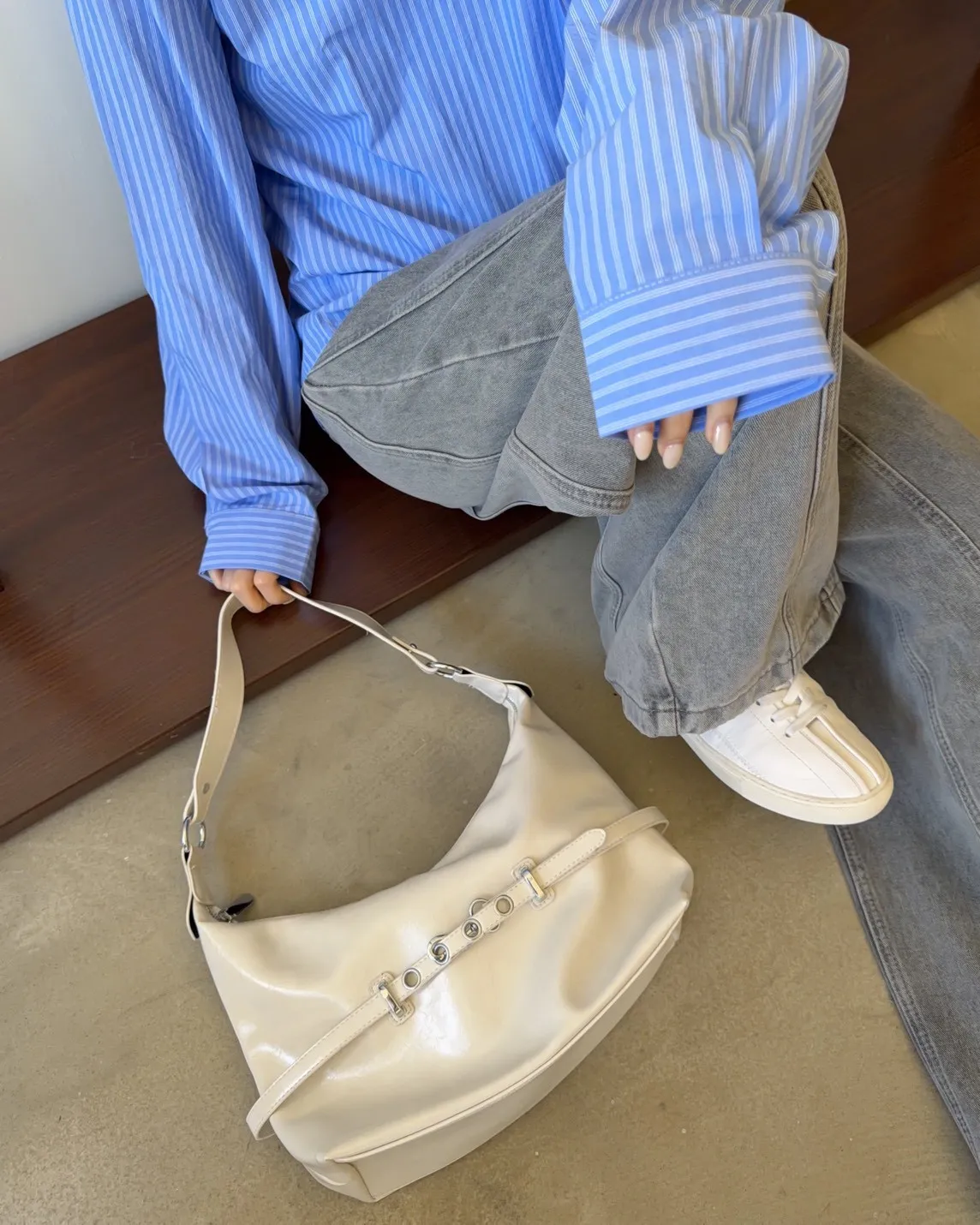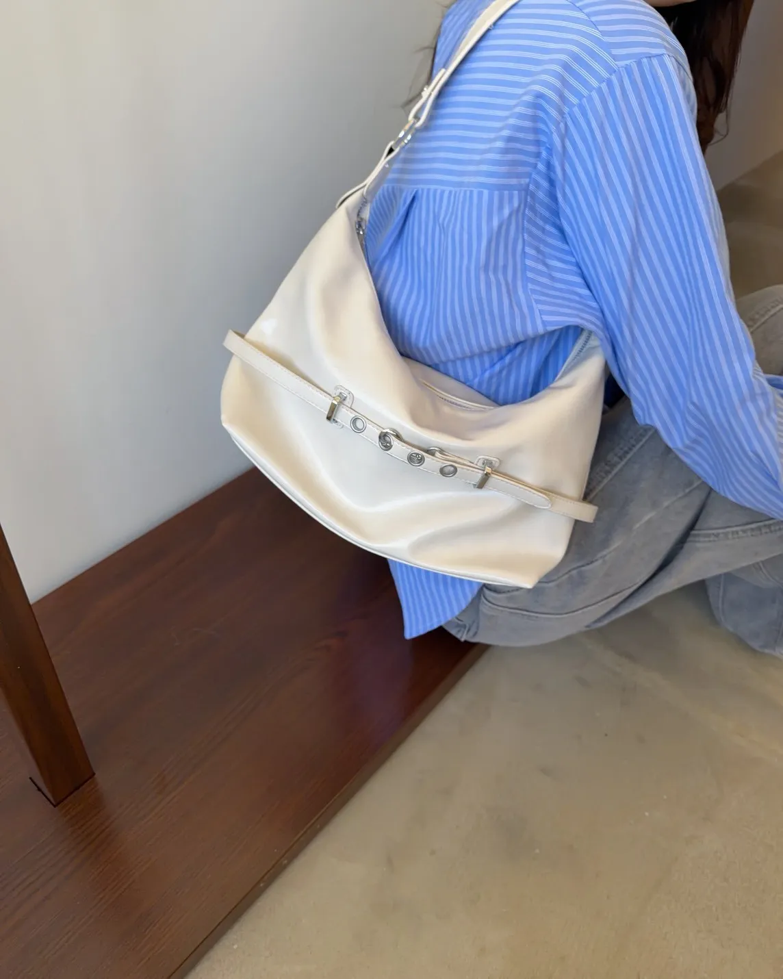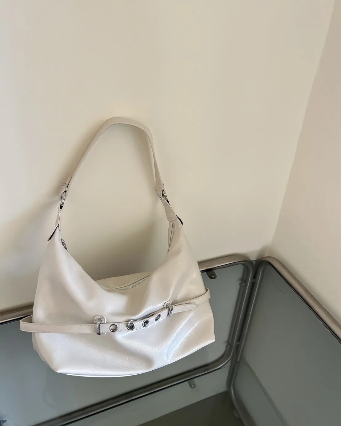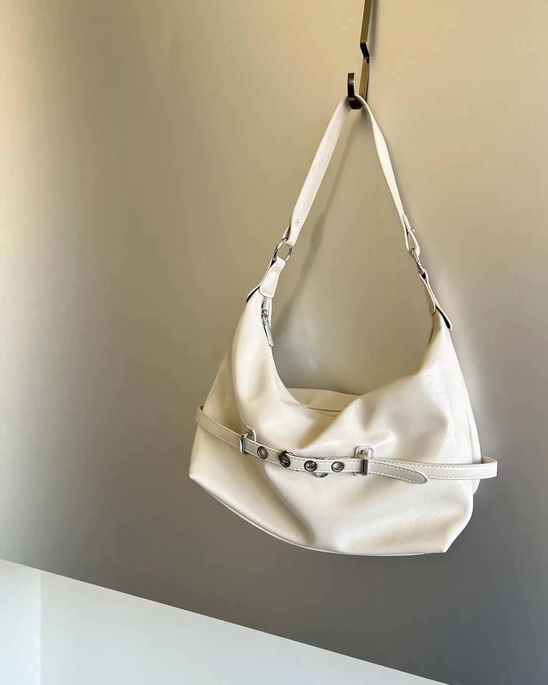 A0040金屬帶扣漆皮肩背包