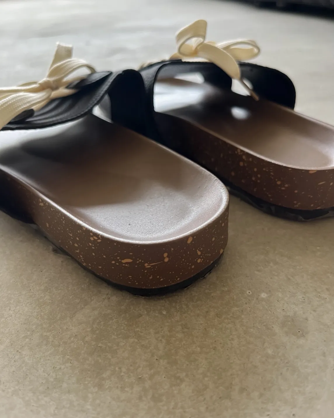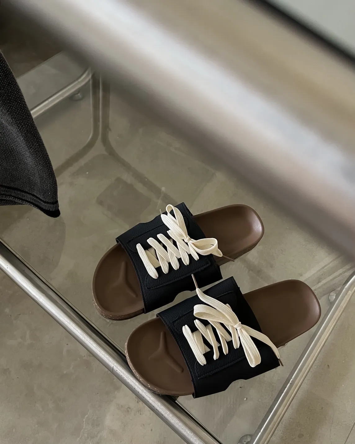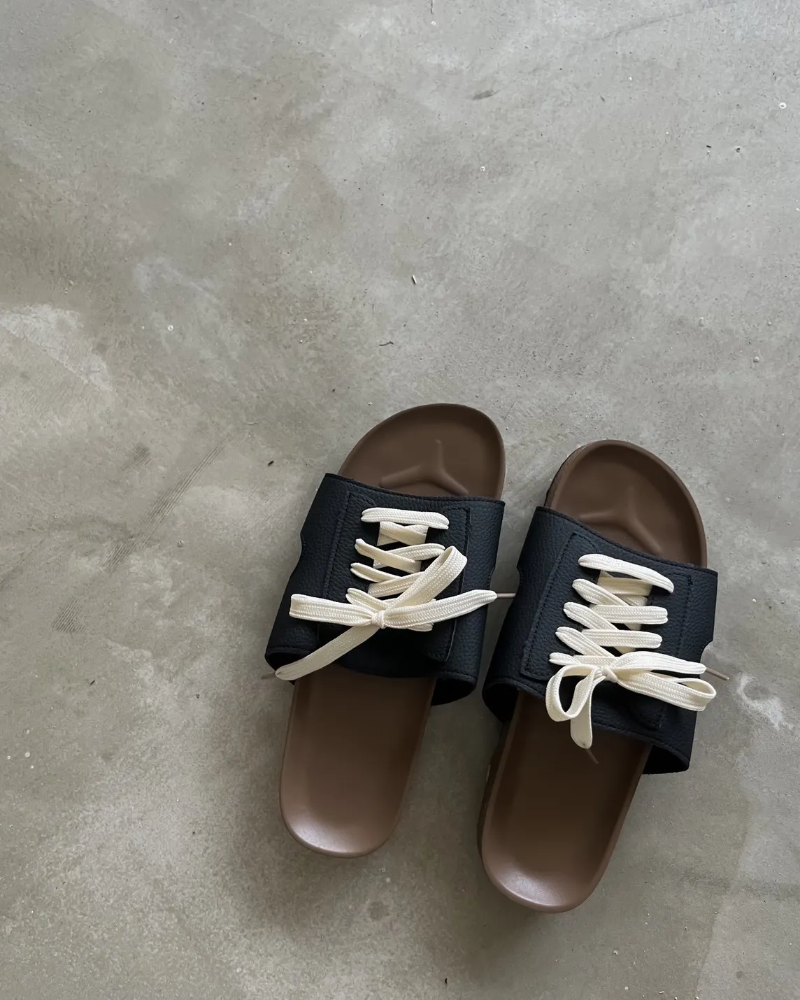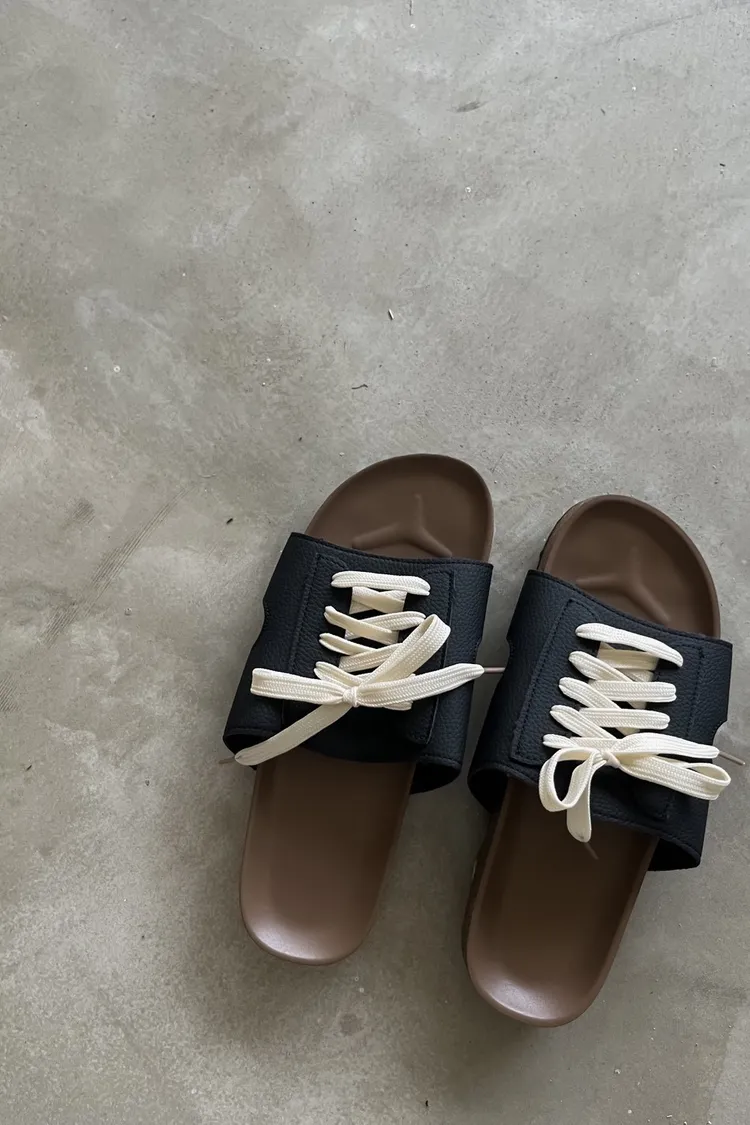KR003隨性綁帶皮革平底拖(Koera)(黑)