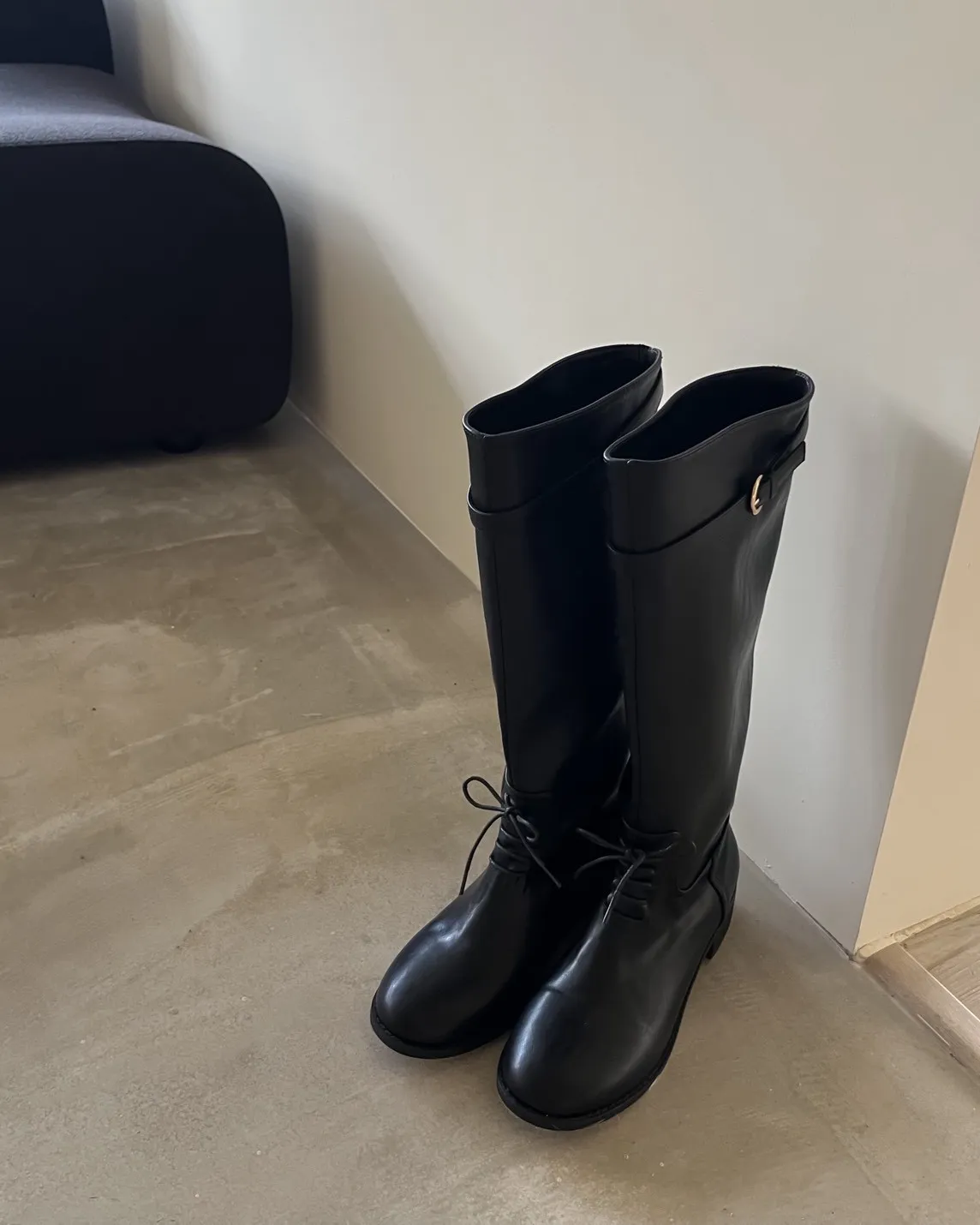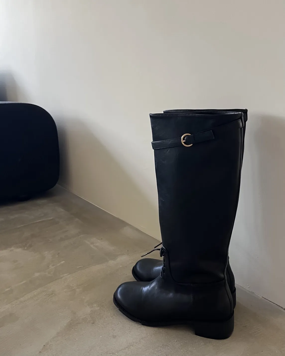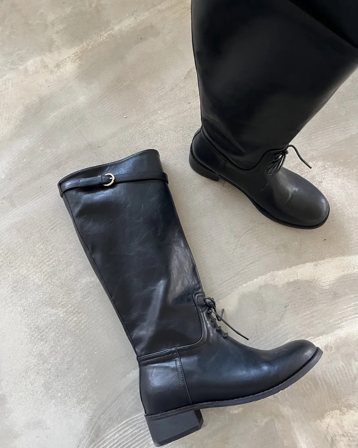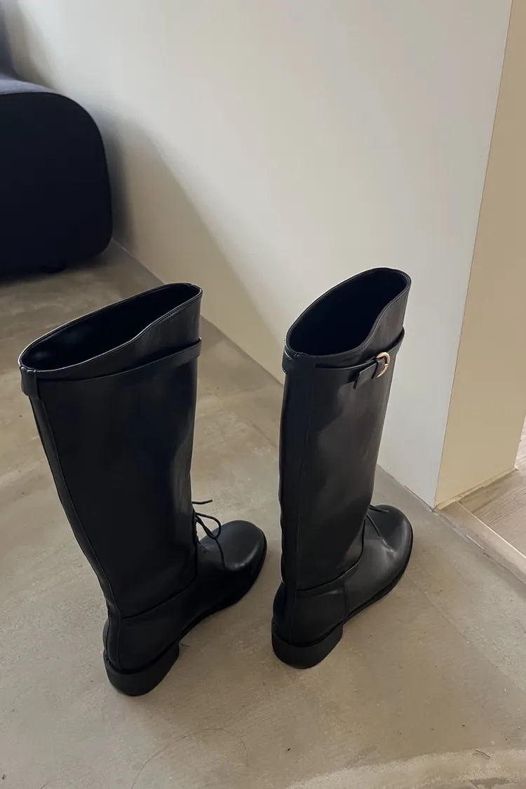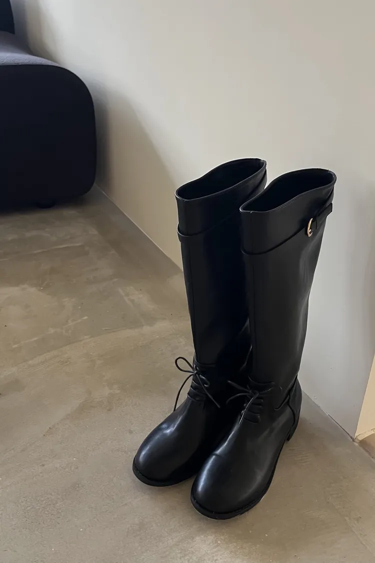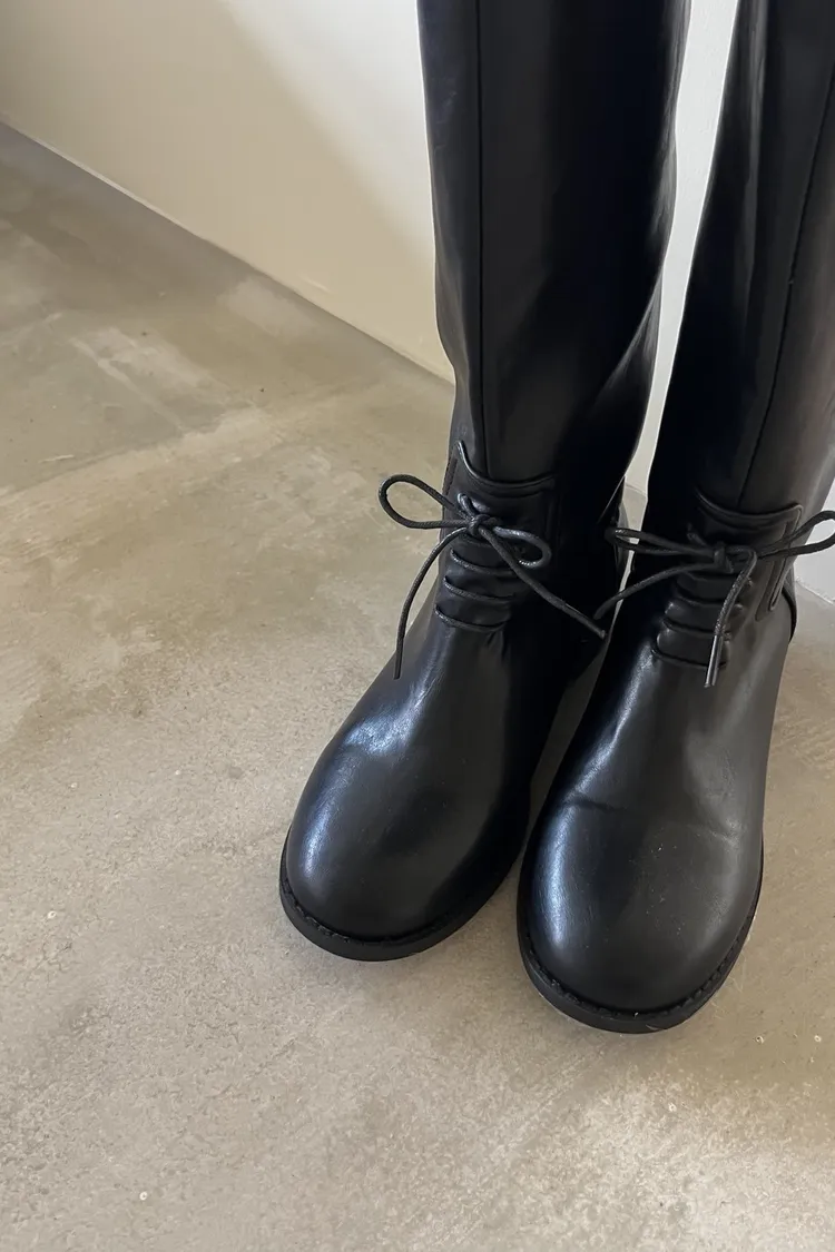 KR148瘦瘦瘦綁帶及膝長靴(Koera)(黑)