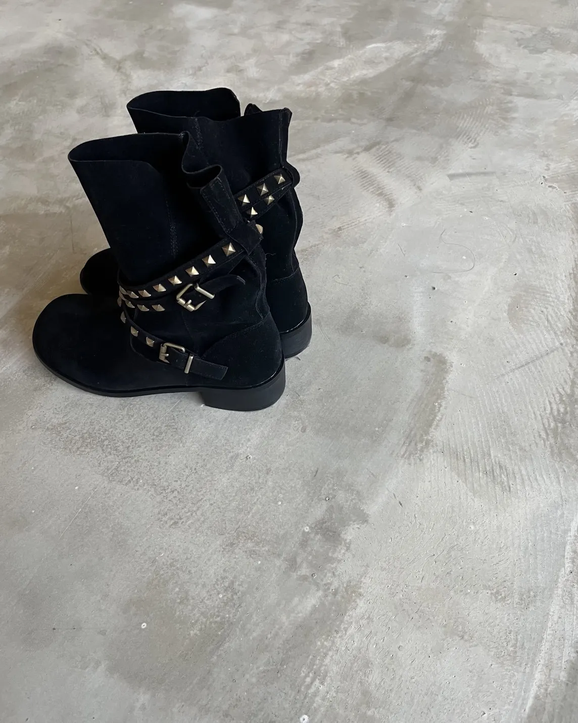 建議拿大半號 韓國設計(委託中國廠商製造) 挺料麂皮 鉚釘造型