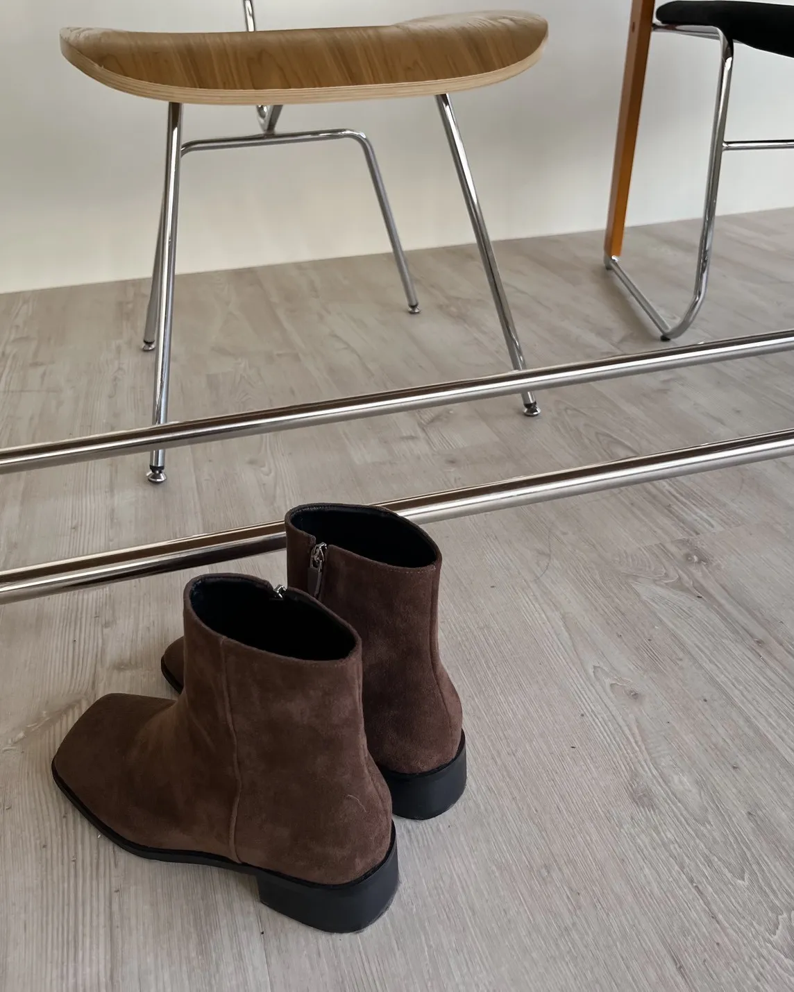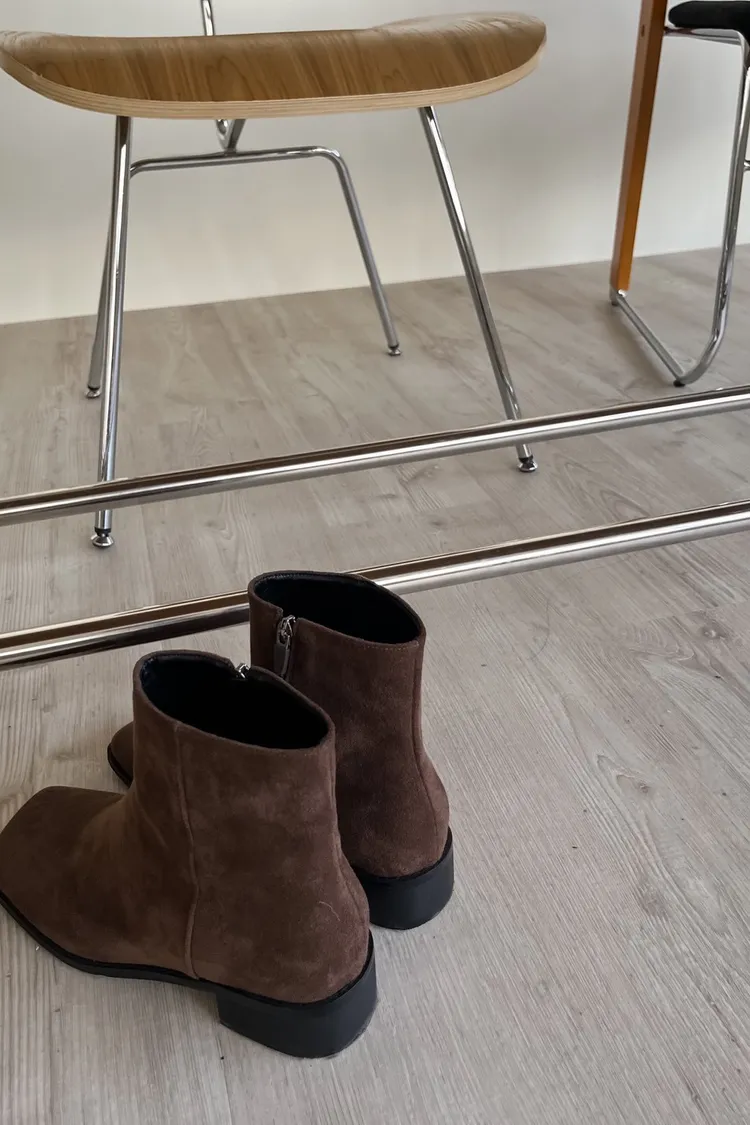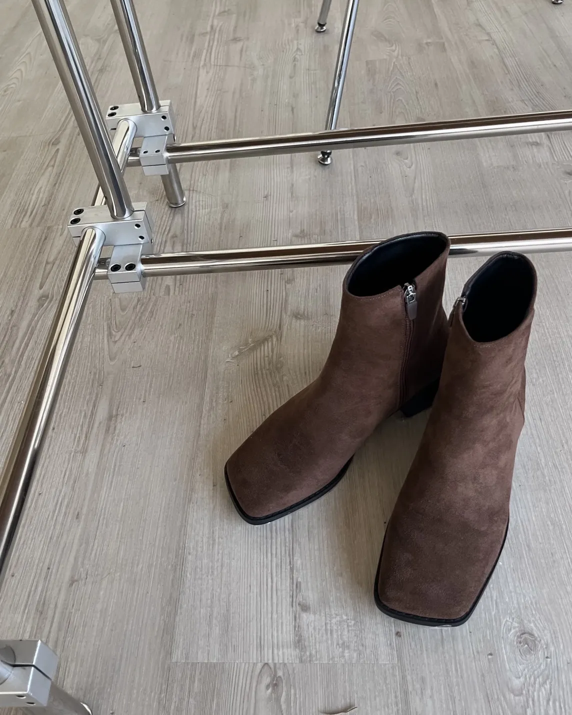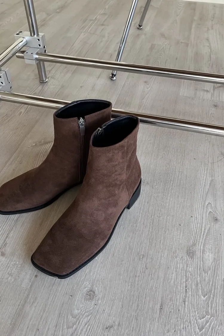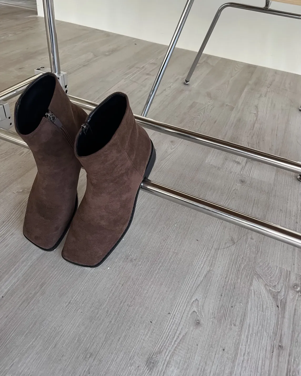 KR158俐落質感麂皮方頭短靴(Koera)(咖啡)