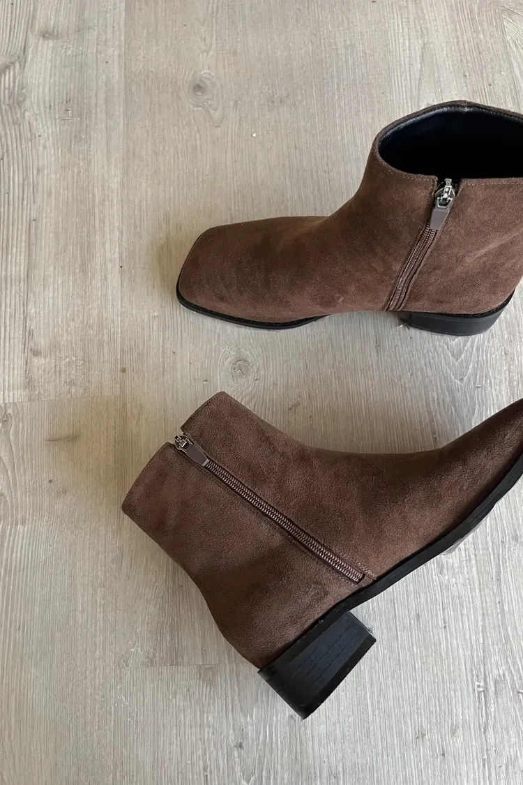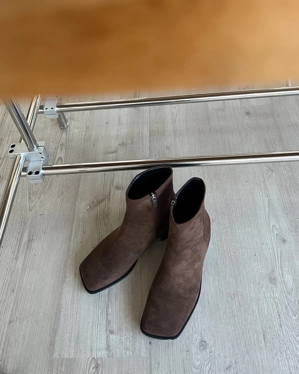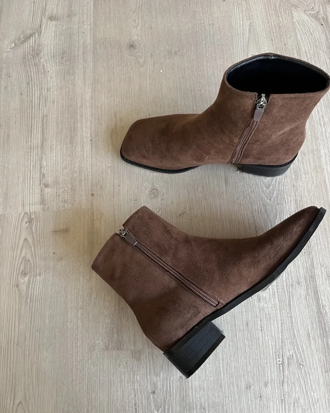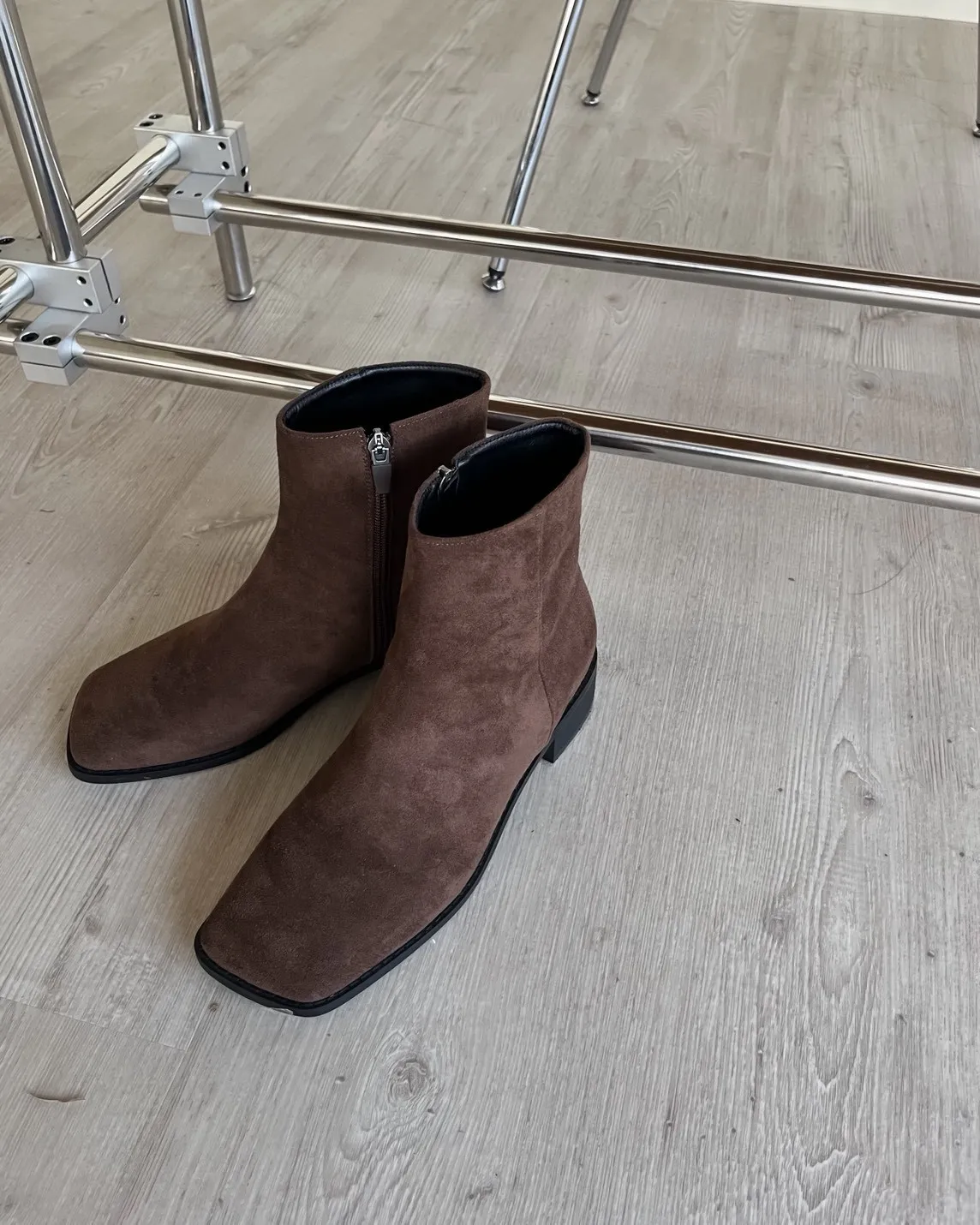 KR158俐落質感麂皮方頭短靴(Koera)(咖啡)
