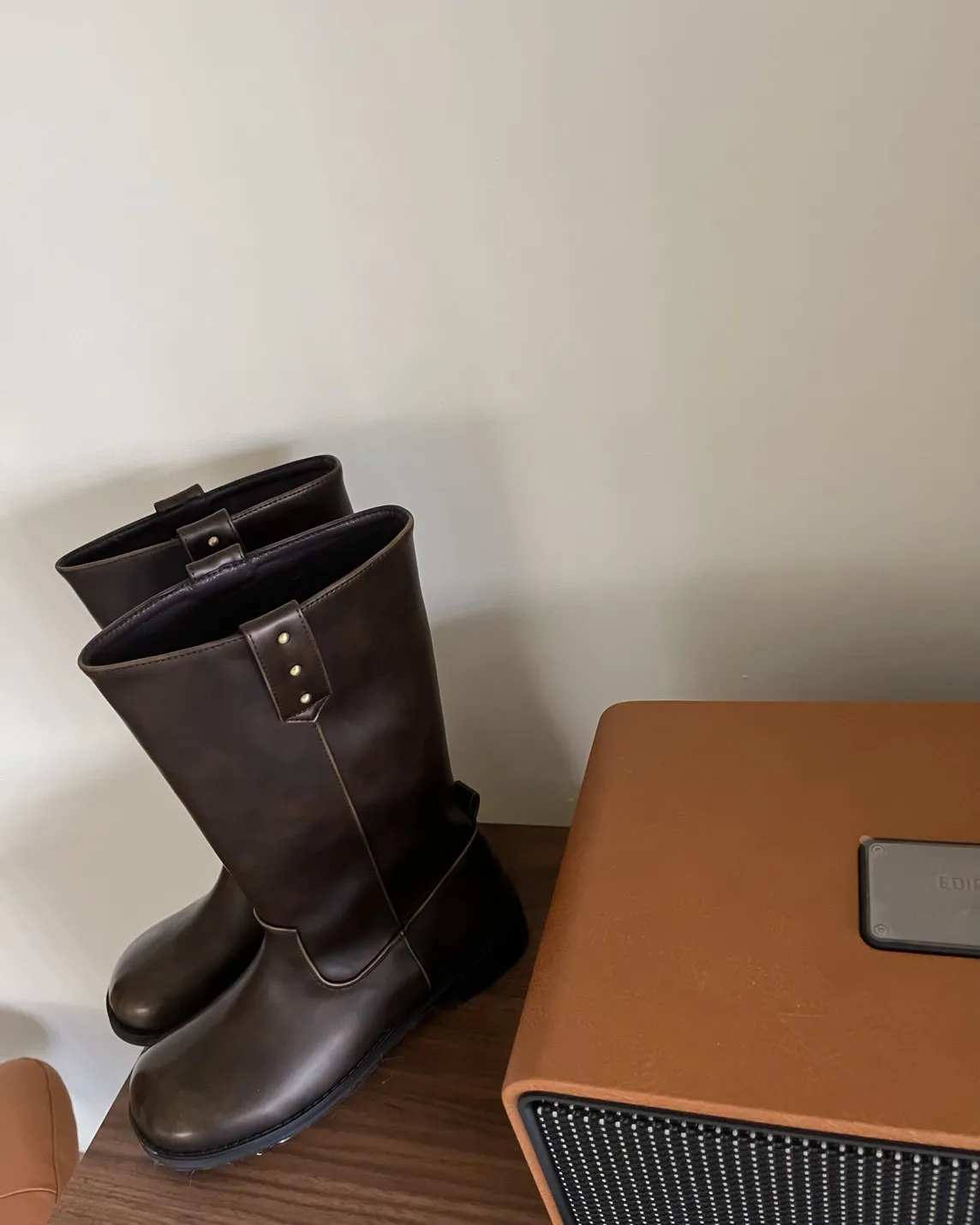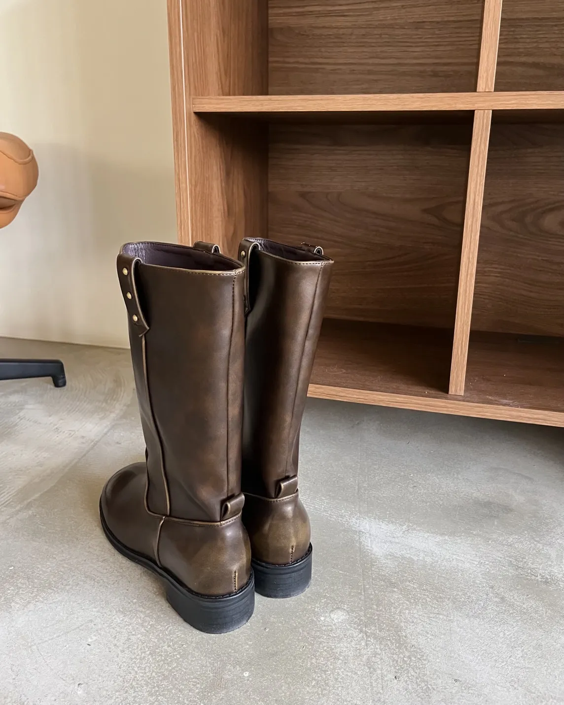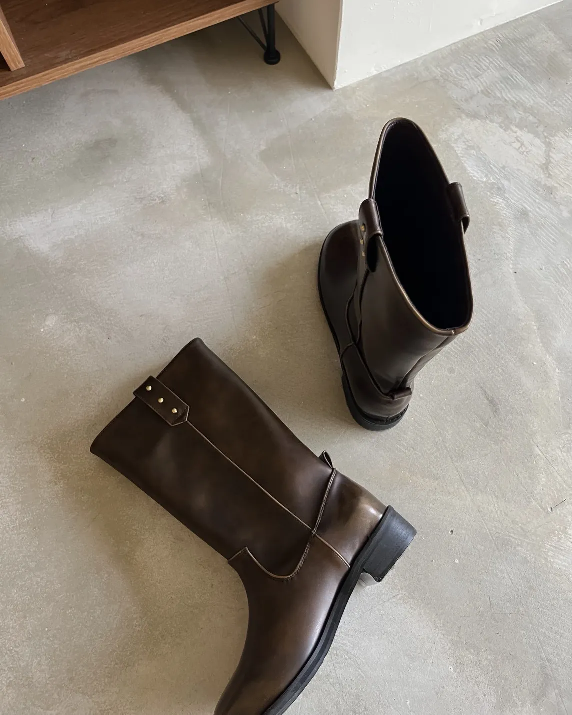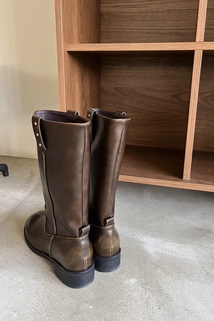 KR165暈染鉚釘長筒靴(Koera)(咖啡)
