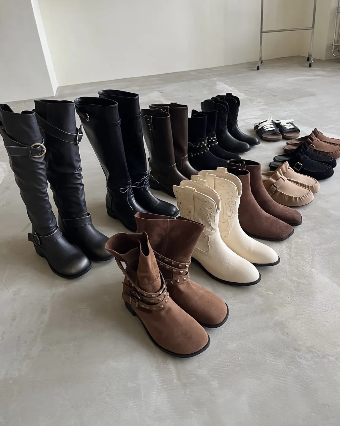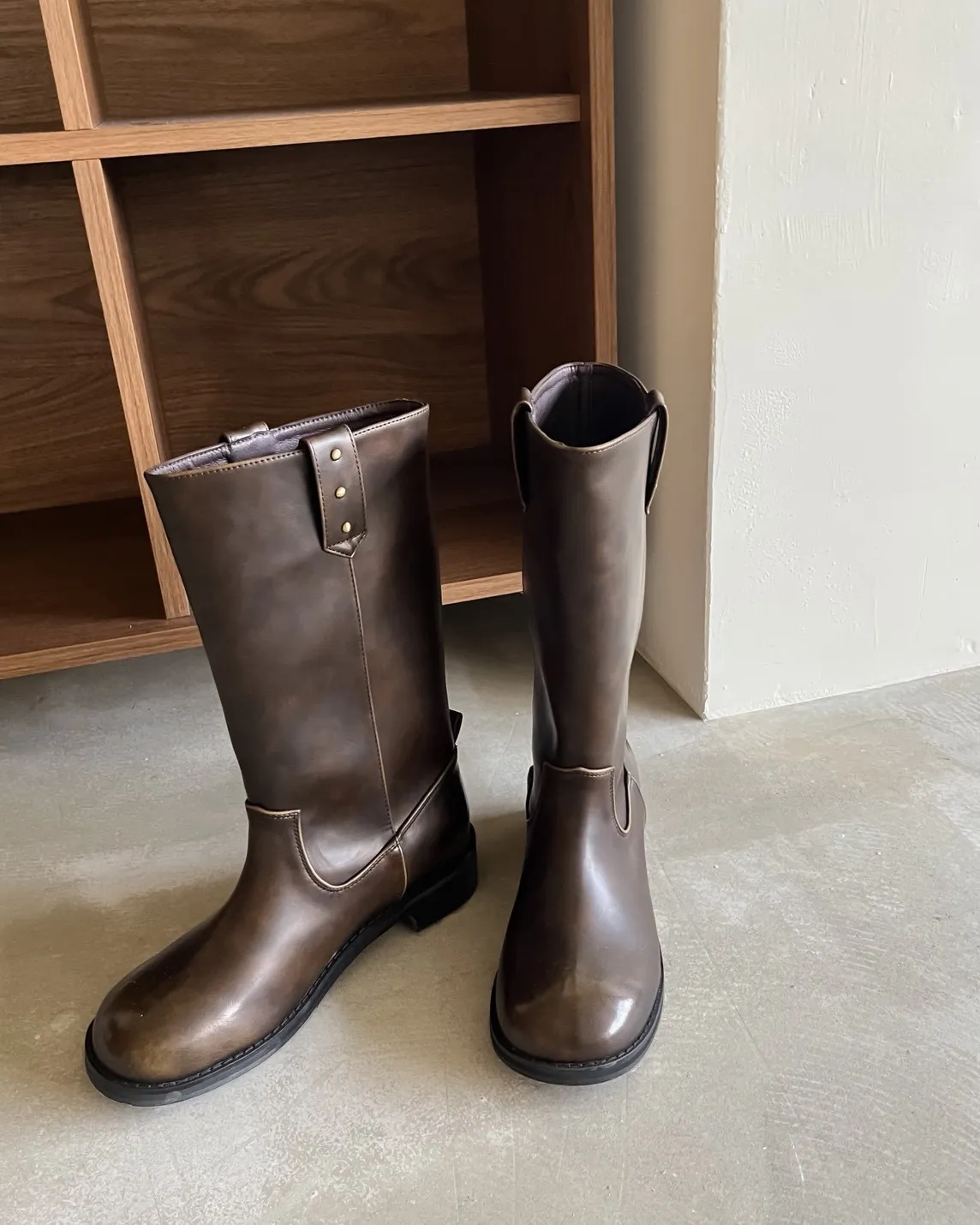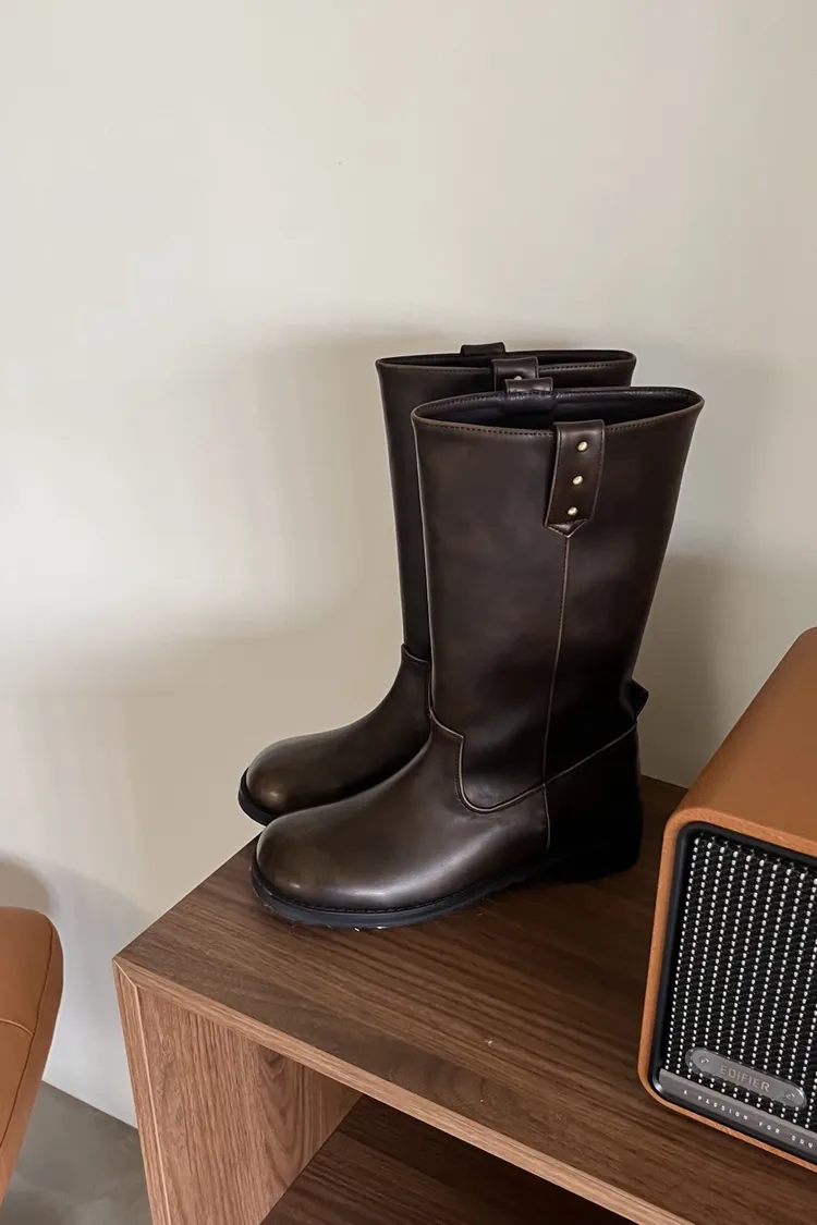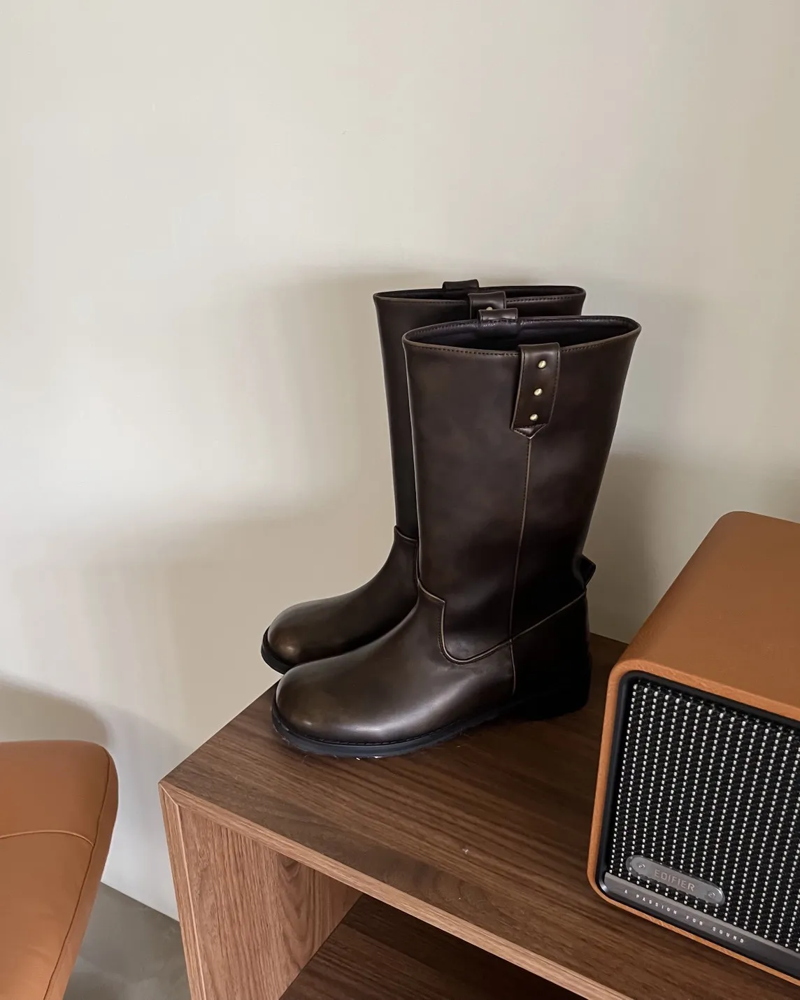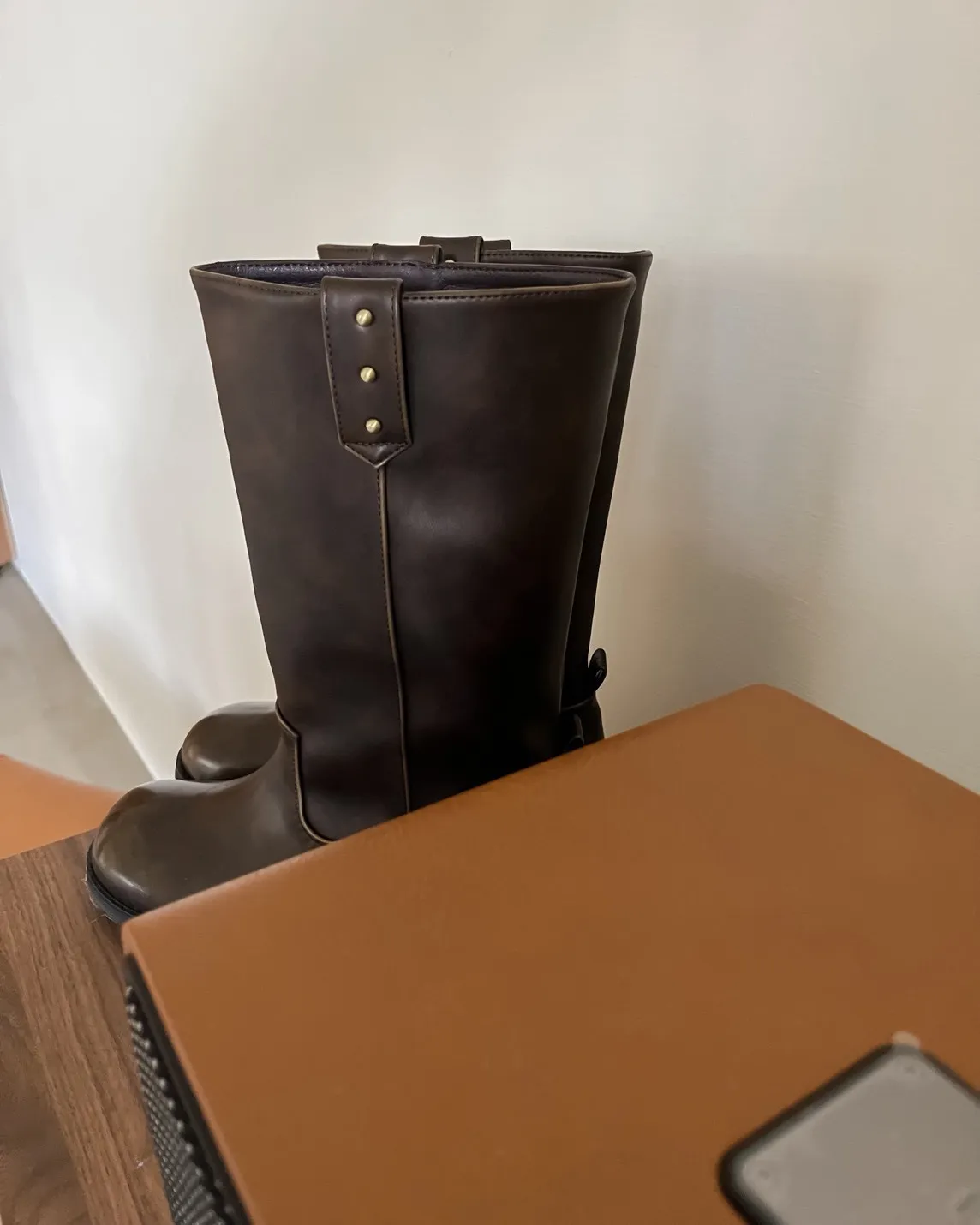 KR165暈染鉚釘長筒靴(Koera)(咖啡)