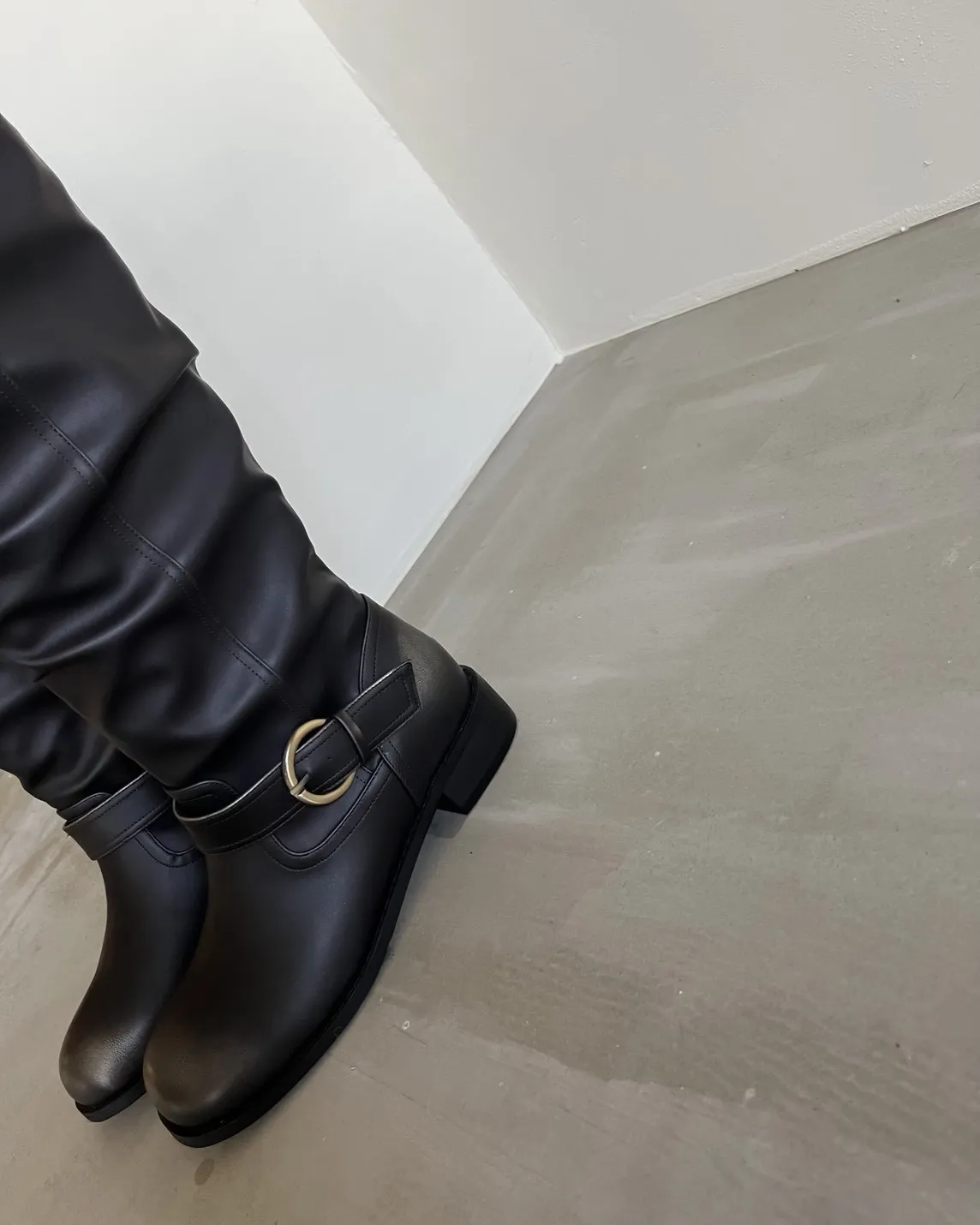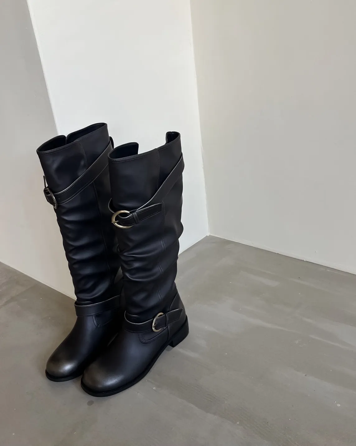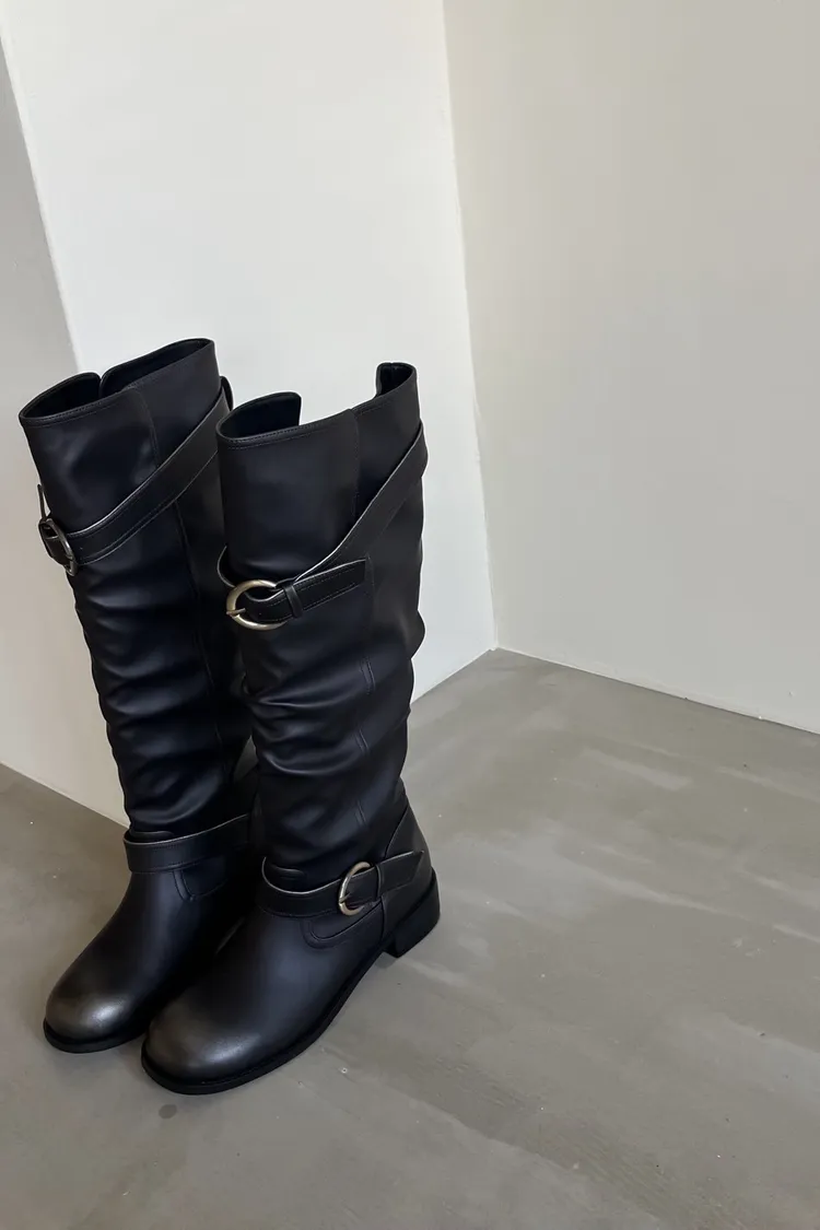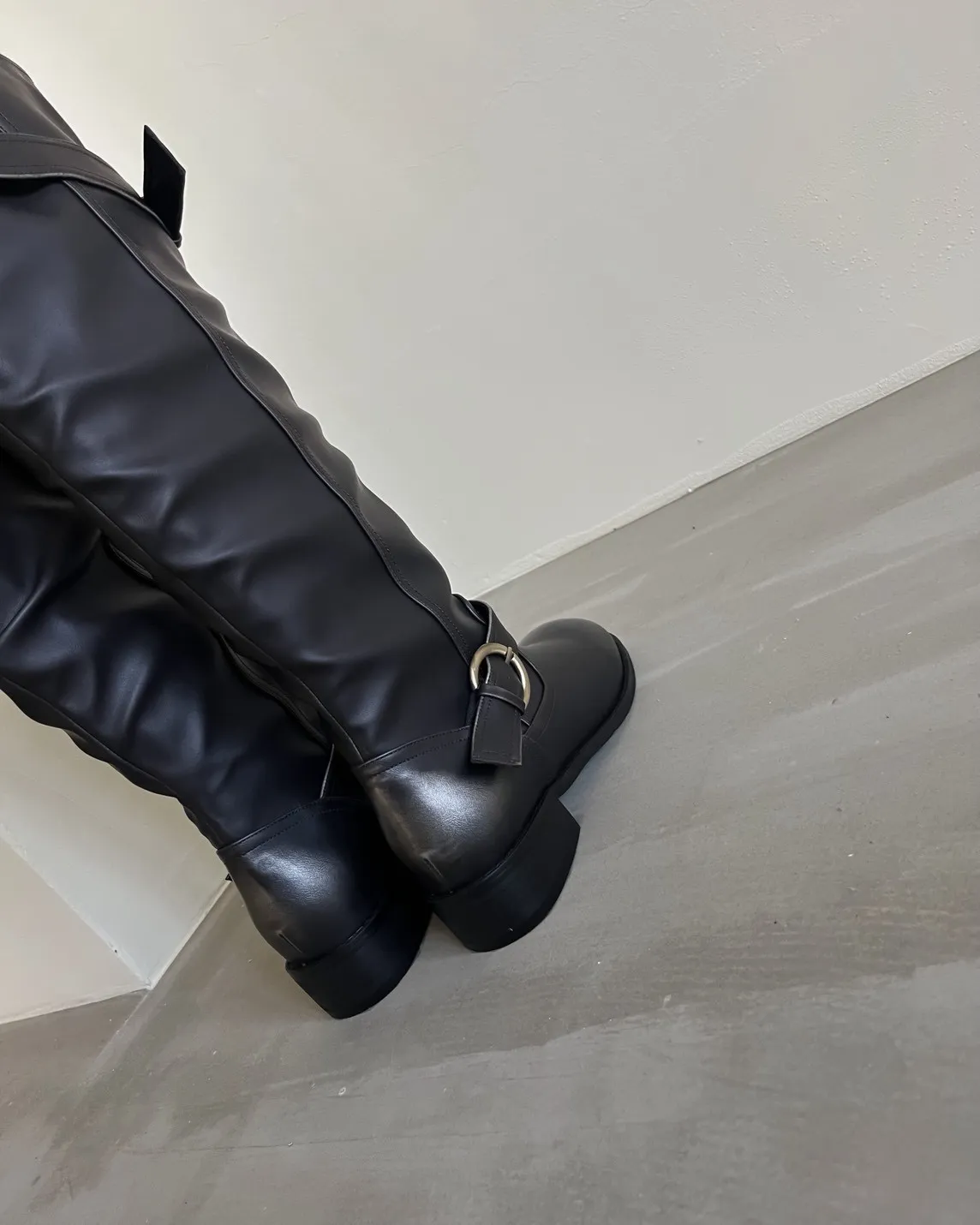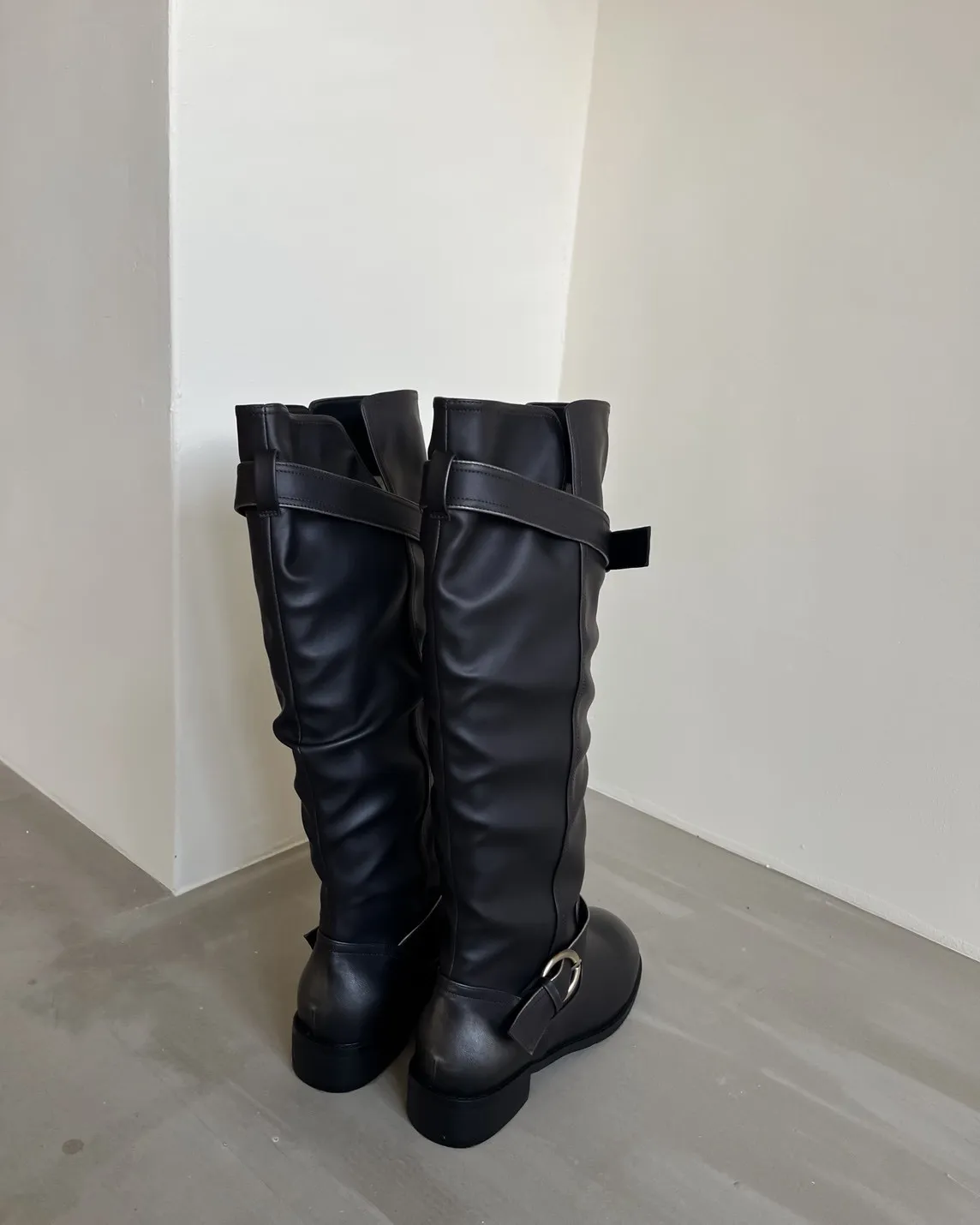 KR168褶皺堆堆感軟皮革長靴(Koera)(黑)