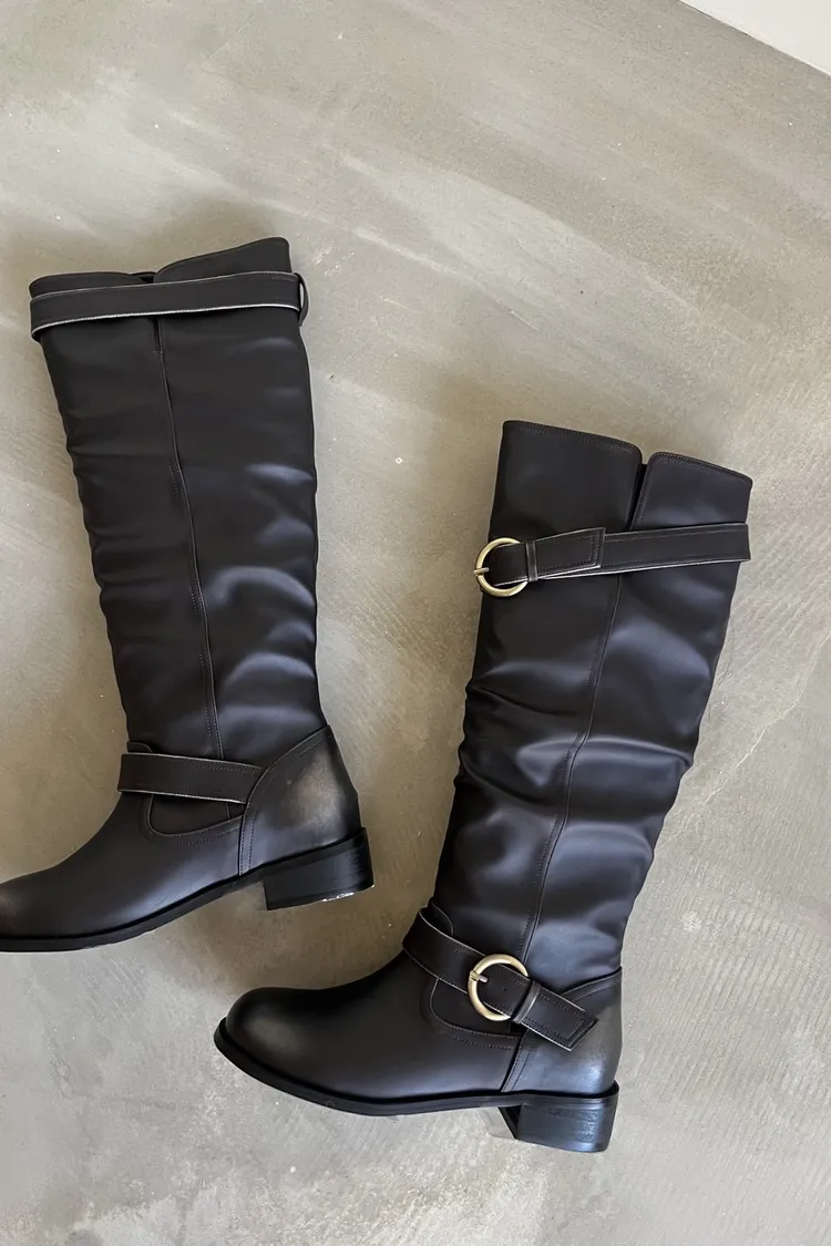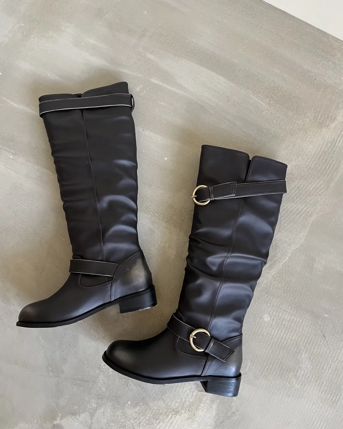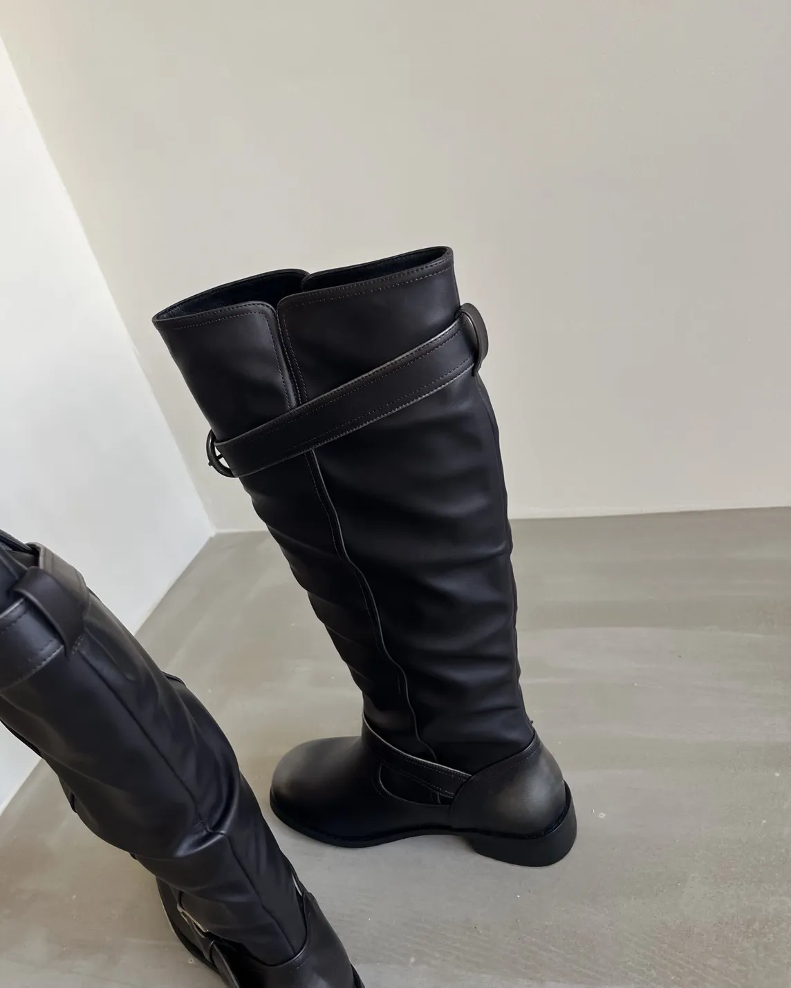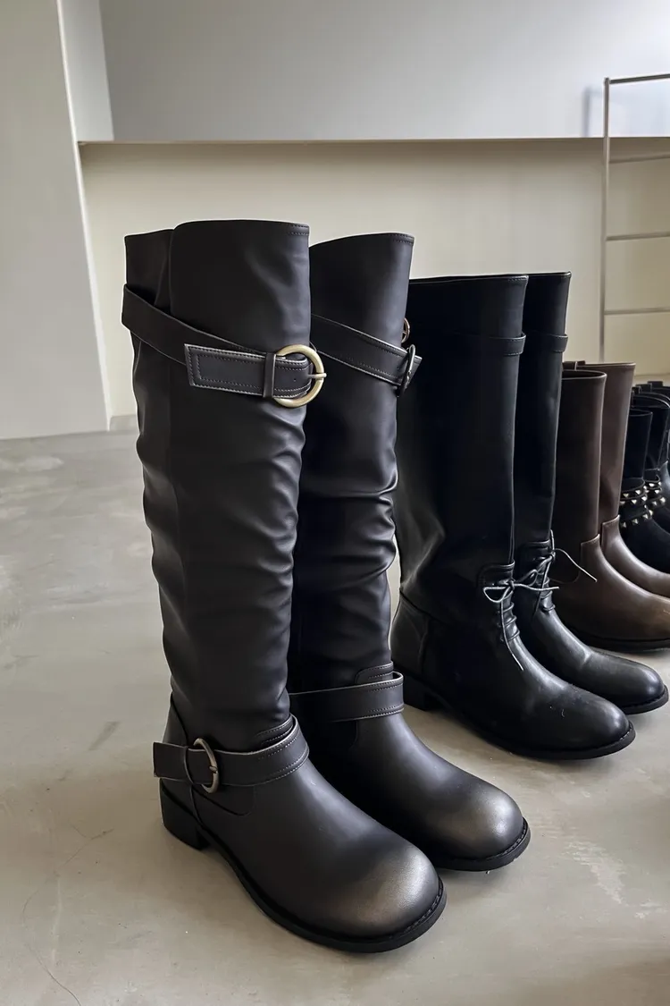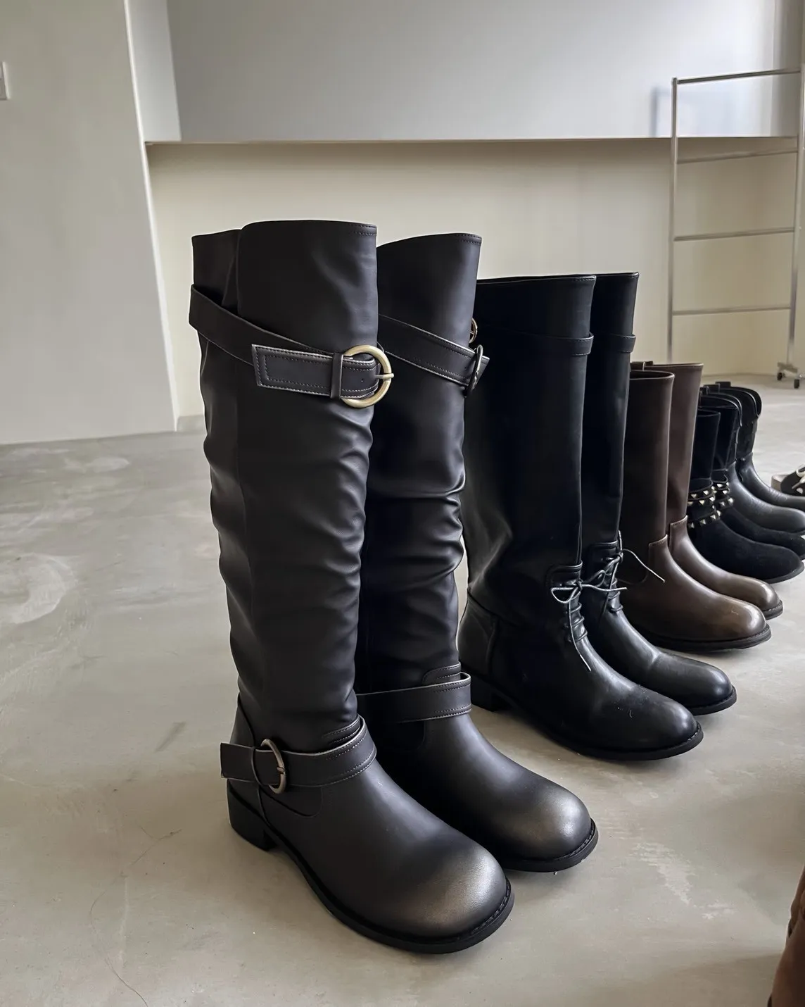 KR168褶皺堆堆感軟皮革長靴(Koera)(黑)